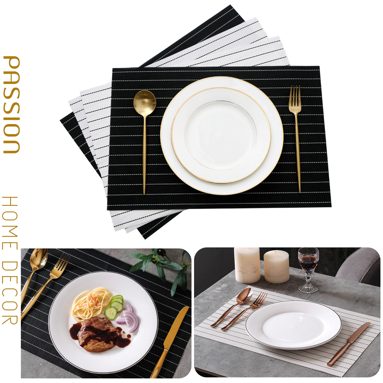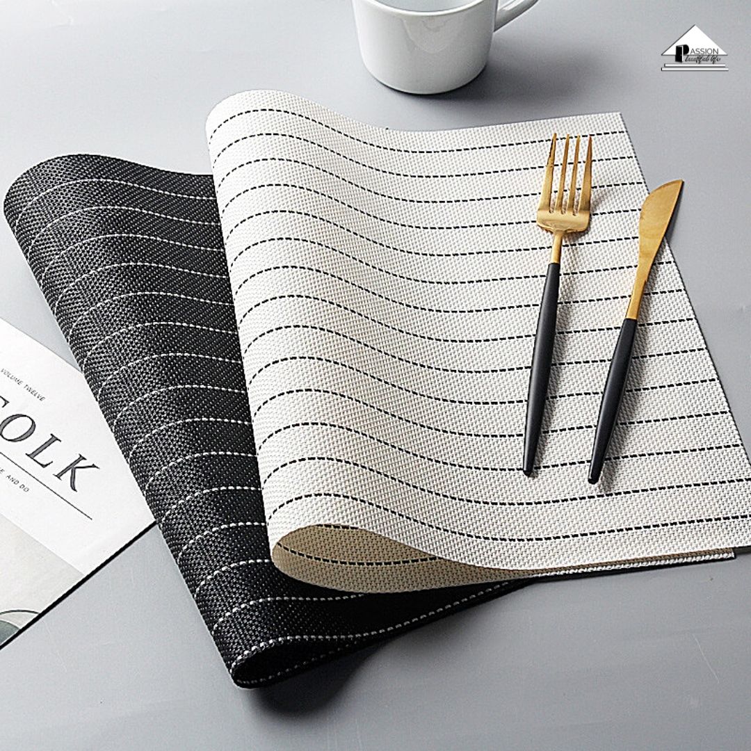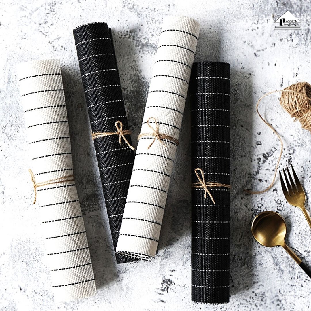 Tấm Trải Bàn PVC Đan Sọc Caro Trang Trí Bàn Ăn Nhà Hàng  là tấm lót chén đĩa, được làm từ nhựa ép dính bằng công nghệ nhiệt lazer giúp chúng có độ liên kết cao, không bong tróc, tuột sợi.