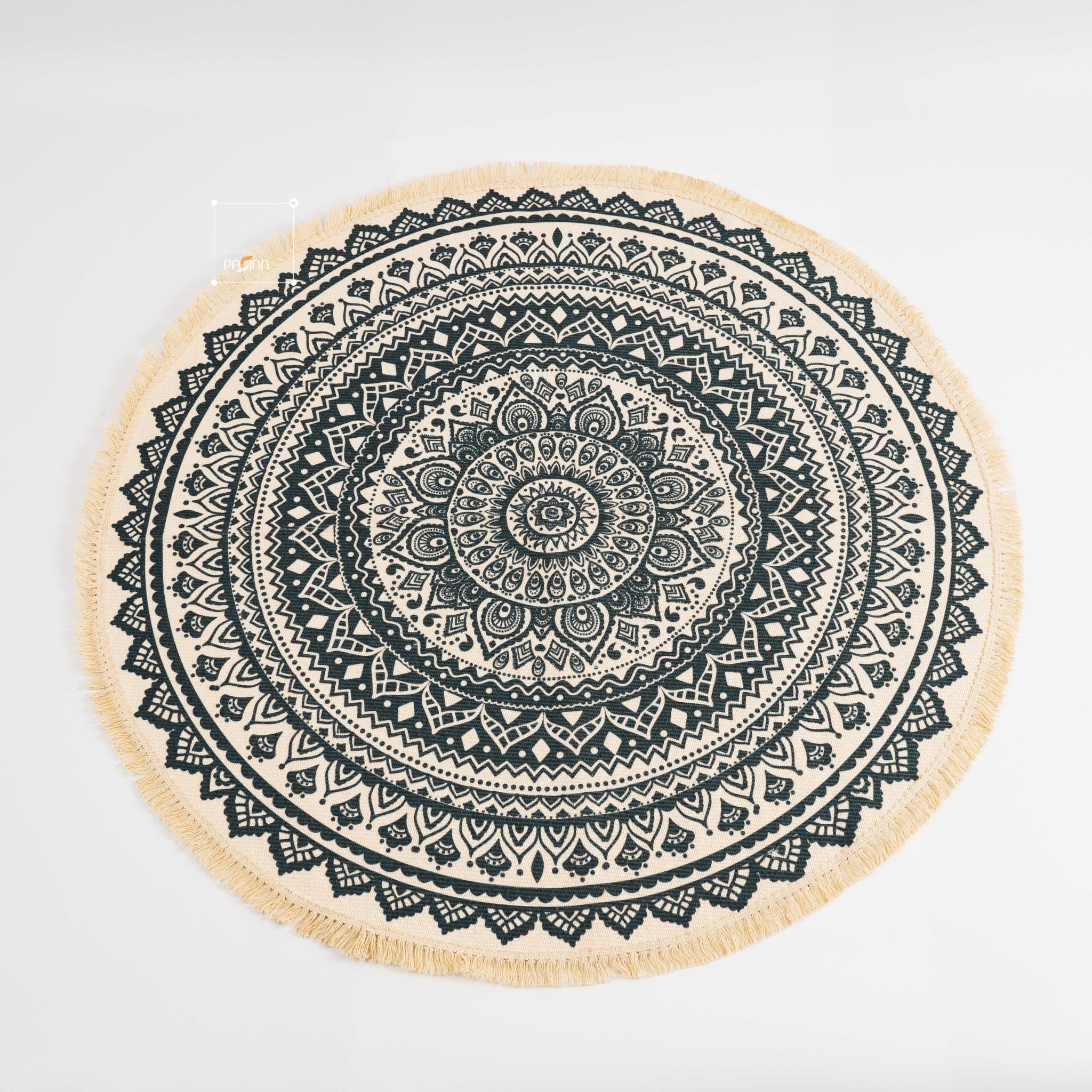 Thảm Canvas Tròn Tua Rua Scadivian Thổ Cẩm