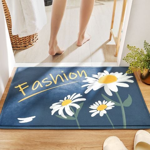 Thảm Lau Chân Nhung Chần Bông Dày Êm Ái Họa Tiết Hoa Cúc Xanh KHUYẾN MÃI - ƯU ĐÃI