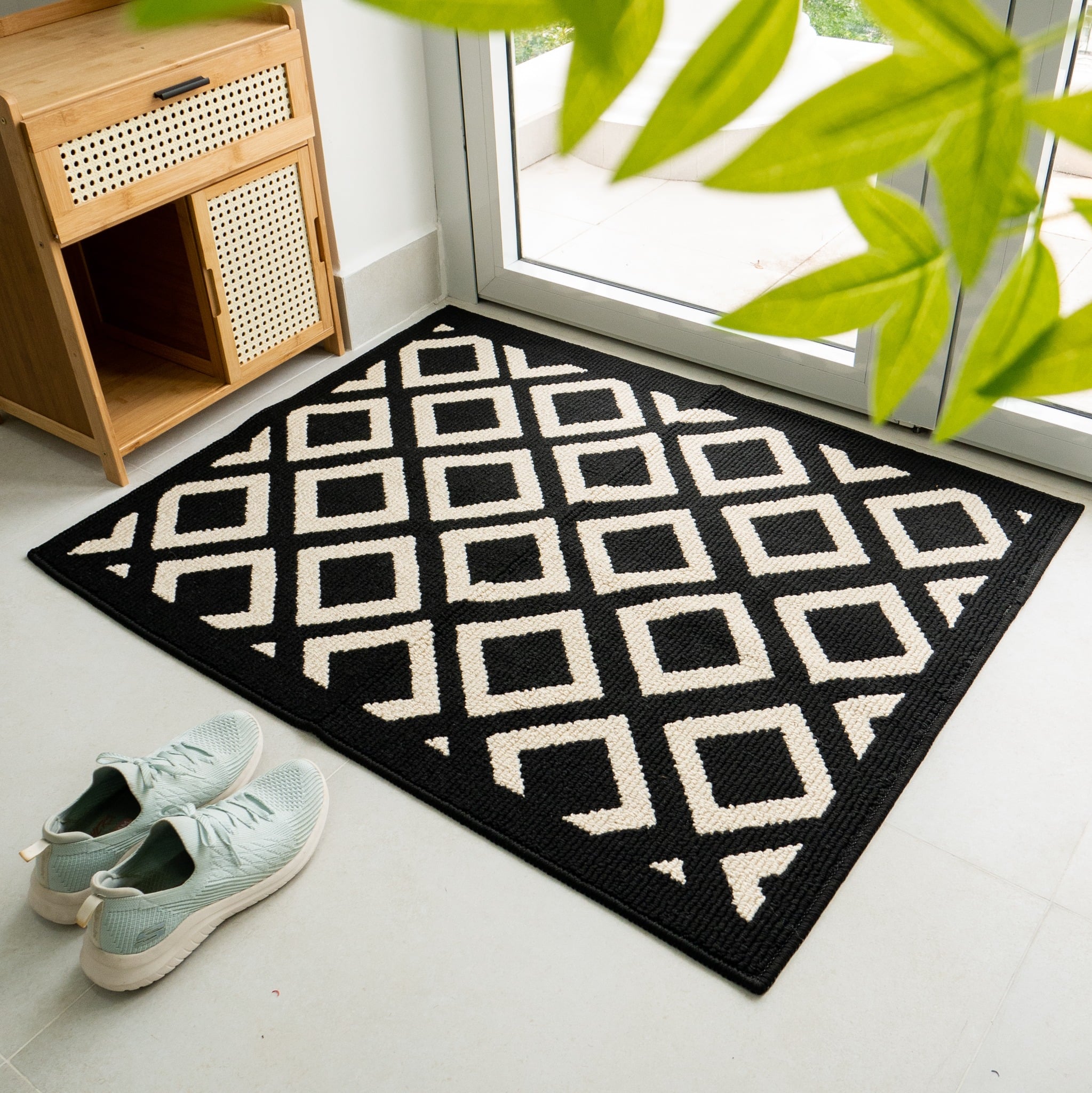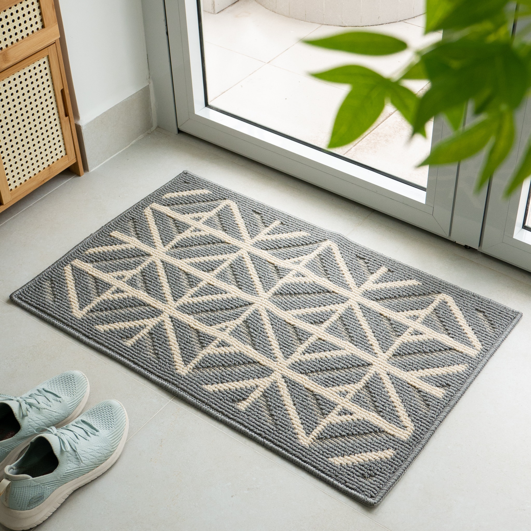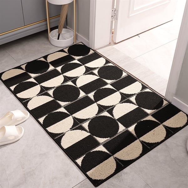 Thảm Lau Chân Siêu Thấm Hút Bụi Để Ở Cửa Ra Vào Họa Tiết Hình Học Xám Đen