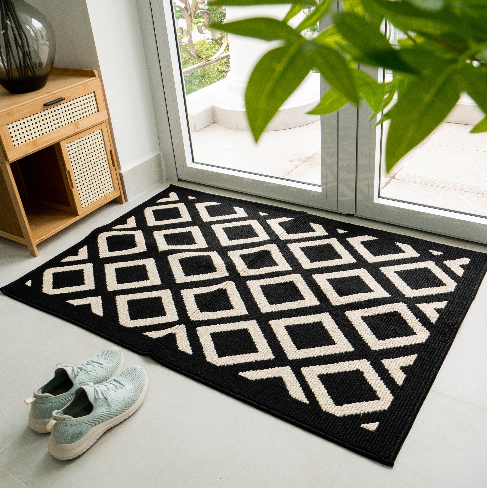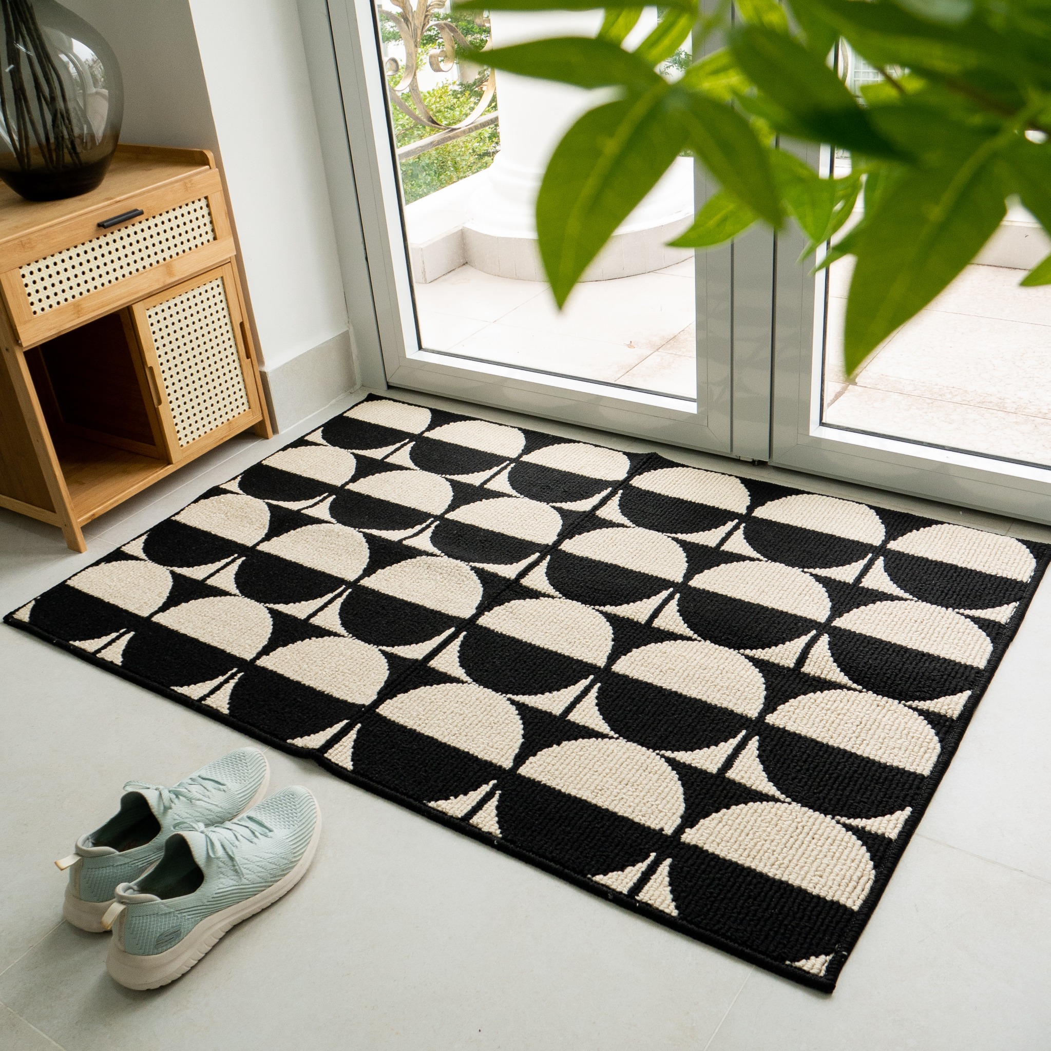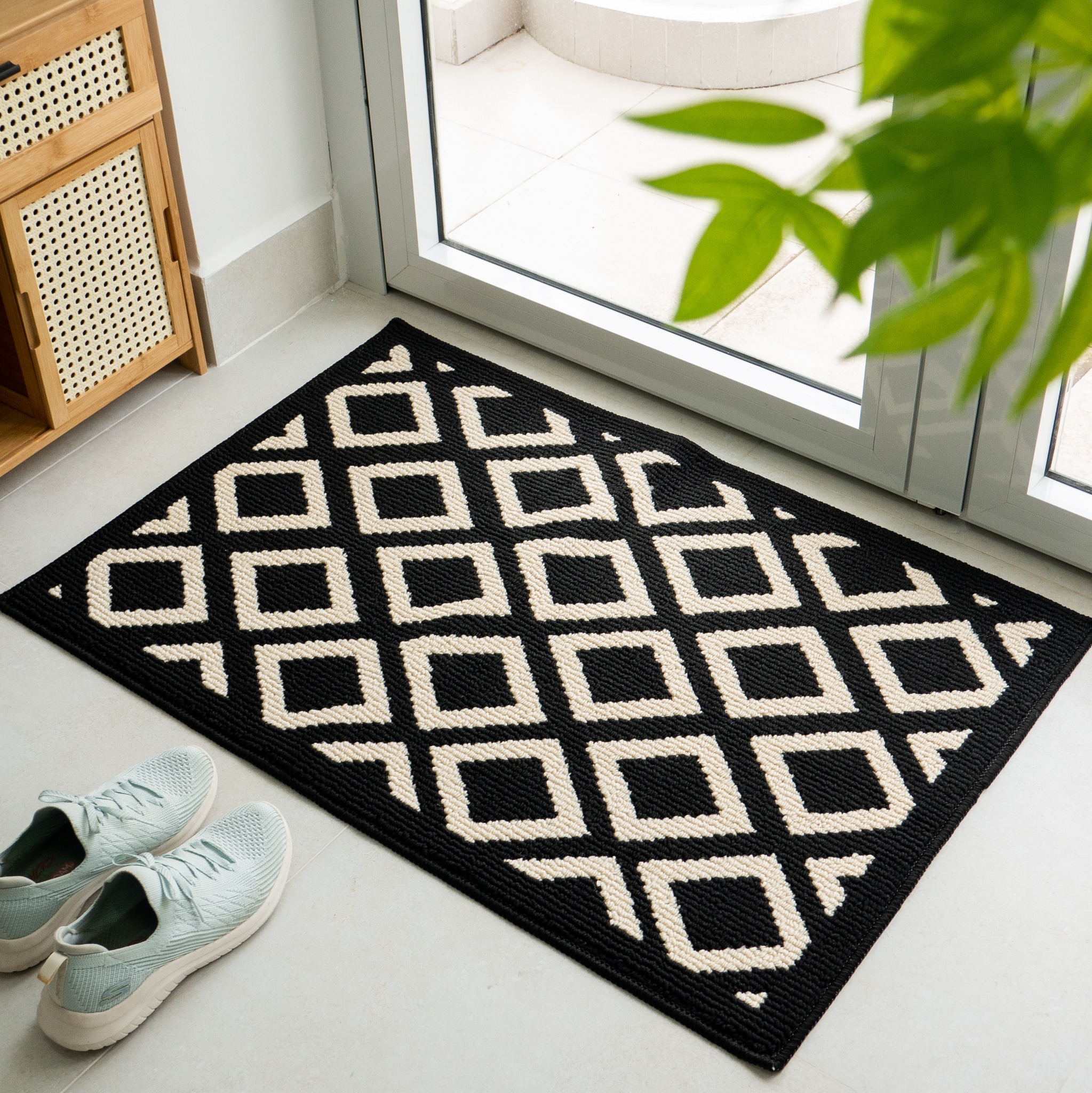 Thảm Lau Chân Siêu Thấm Hút Bụi Để Ở Cửa Ra Vào Họa Tiết Hình Học Xám Đen