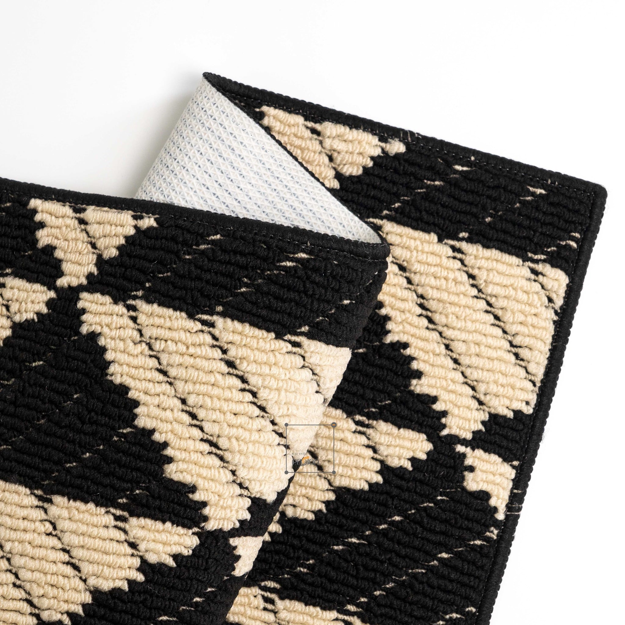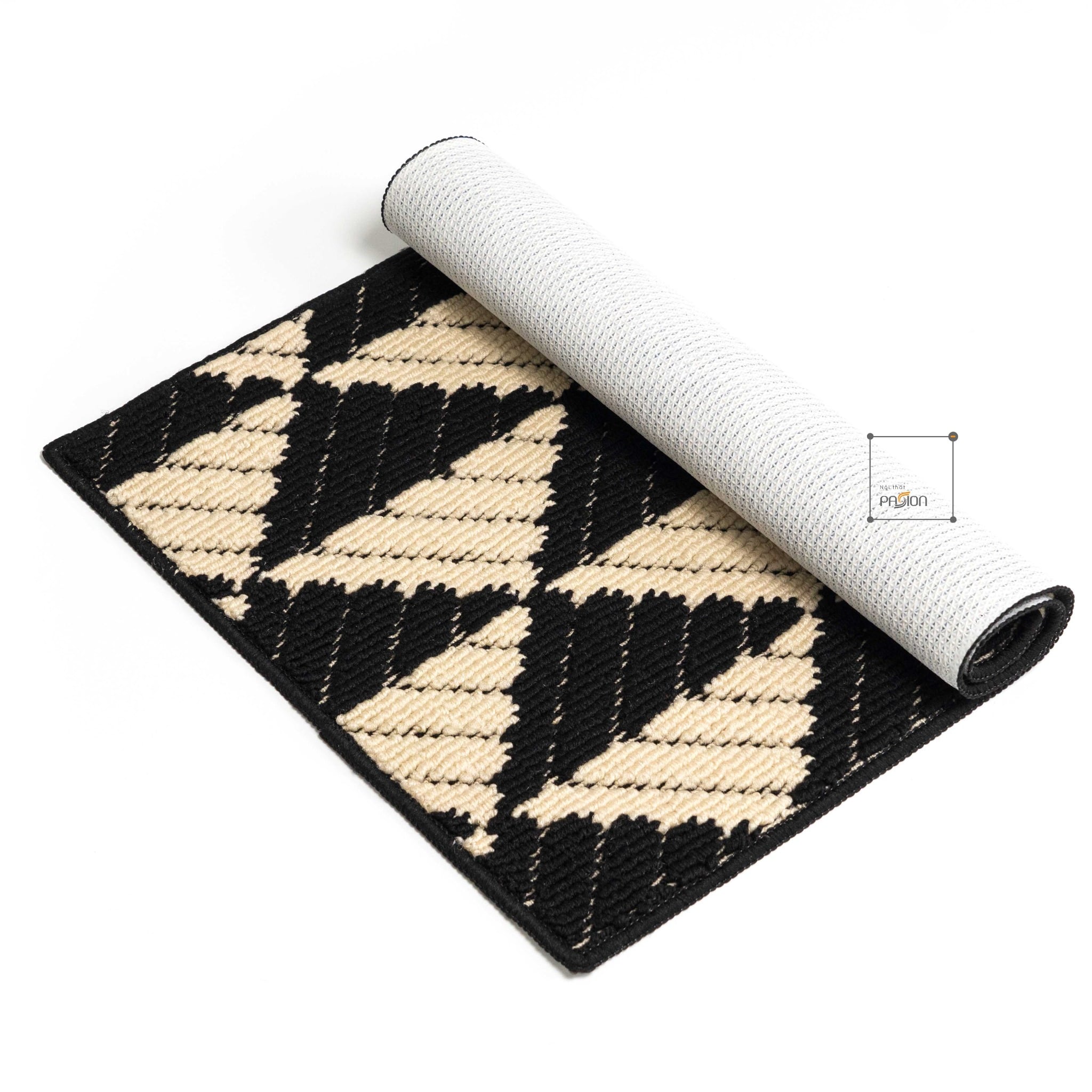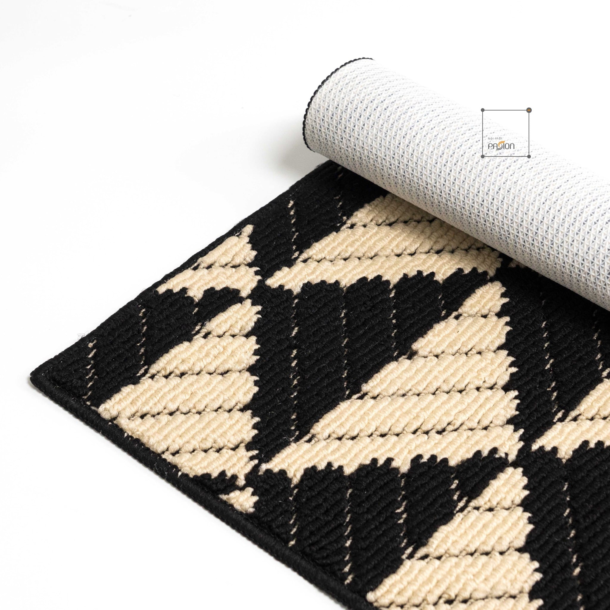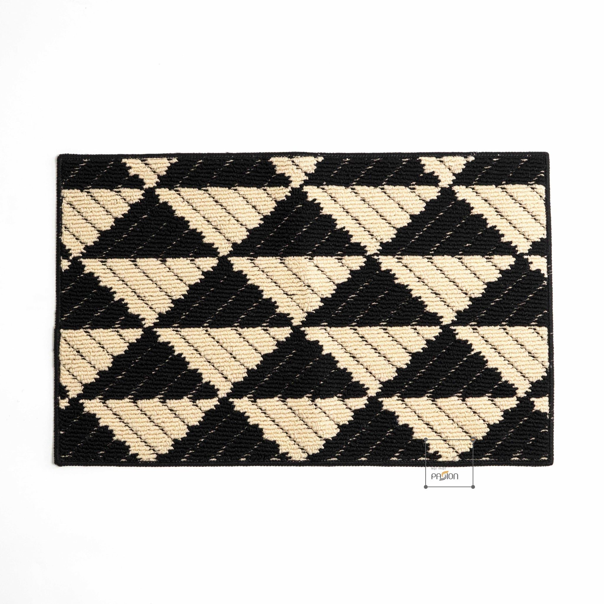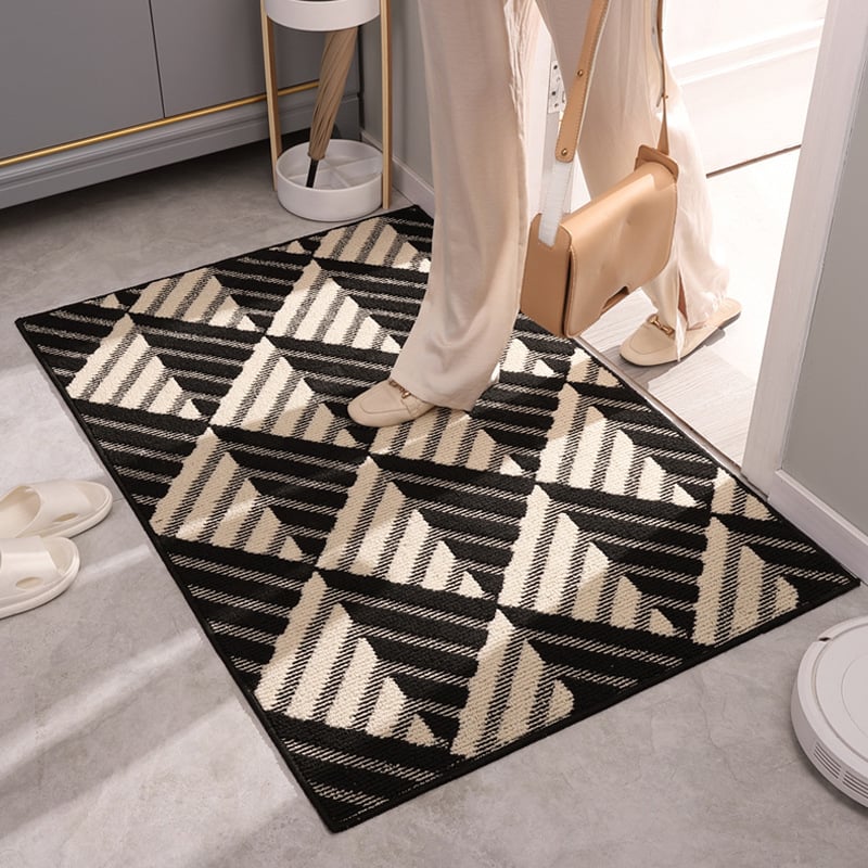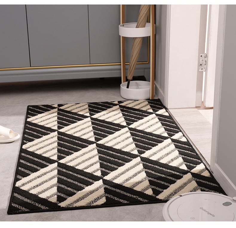 Họa tiết hình học xám đen đơn giản nhưng hiện đại, dễ dàng kết hợp với nhiều phong cách nội thất khác nhau. Đây không chỉ là một chiếc thảm lau chân mà còn là một phụ kiện trang trí làm nổi bật không gian.