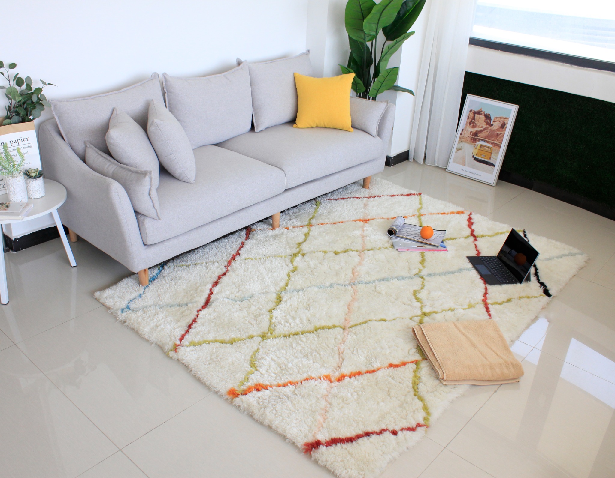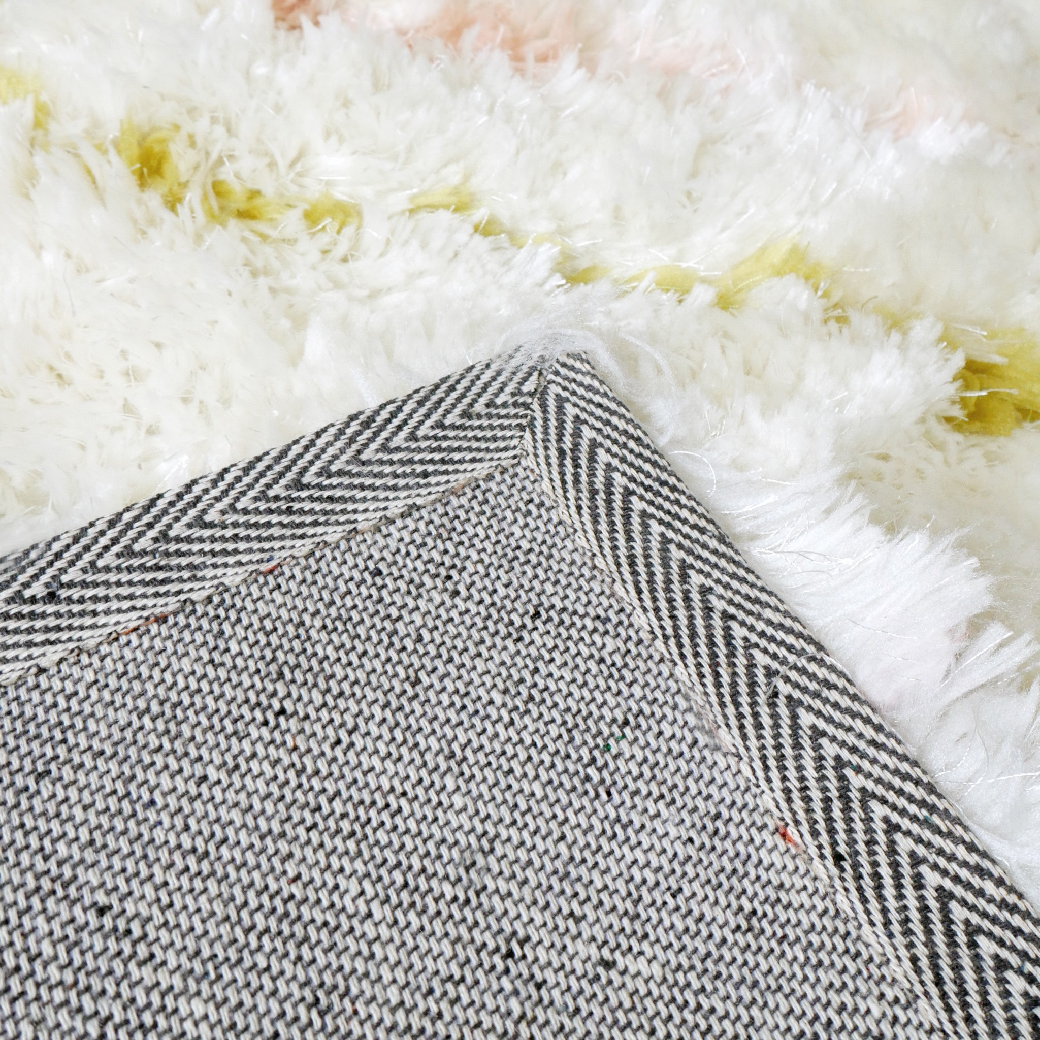 Chỉ với mắt thường, người dùng đã có thể nhận thấy phần Lông sợi của Thảm được gia công rất chắc chắn. Điều đó chứng tỏ chất lượng của Thảm Lông Cừu Dệt Sợi Xịn Mịn Họa Tiết Hình Học Màu vô cùng hoàn hảo.
