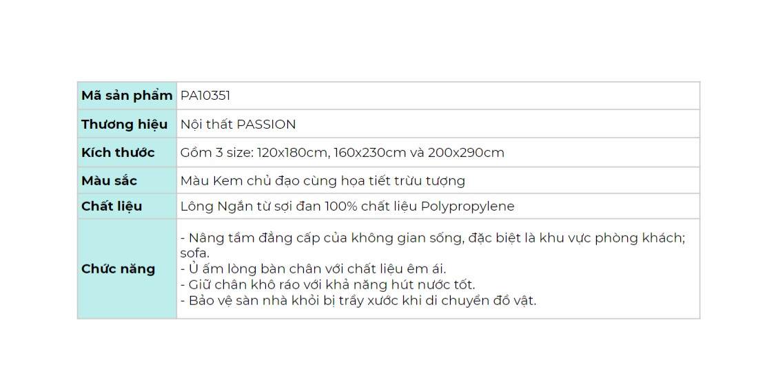 Thảm Lông Sợi Ngắn Alice Họa Tiết Đốm Trừu Tượng là item được chăm chút vào mảng chất lượng. Thảm sử dụng chất liệu sợi đan 100% Polypropylene, vì thế có độ mềm mại vô cùng ấn tượng. Lông Thảm được gia công kỹ lưỡng, hạn chế tình trạng rụng, vì thế gia đình cho trẻ nhỏ hoàn toàn an tâm khi sử dụng sản phẩm mới của Nhà Passion!
