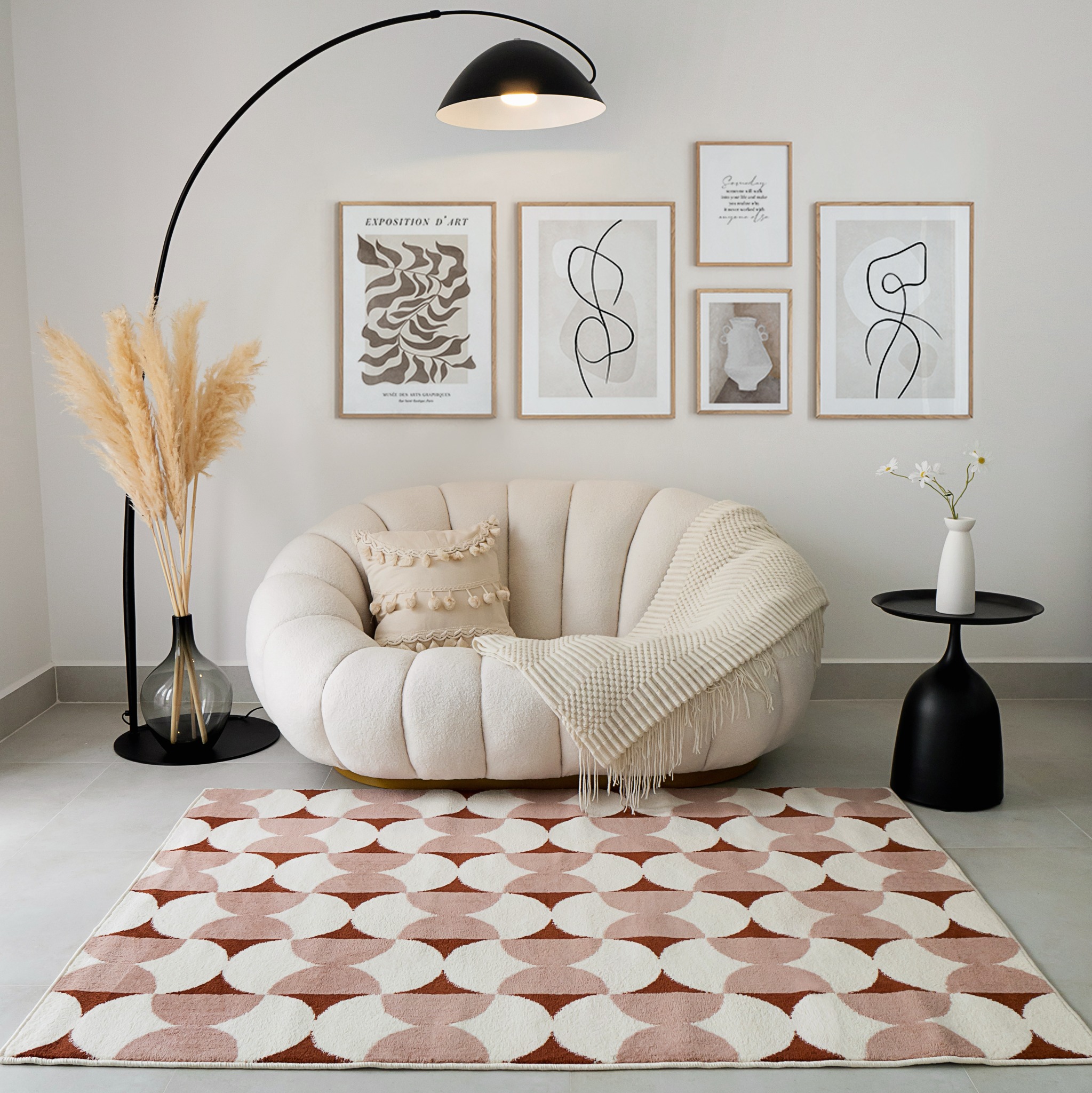 Khác với Thảm Alice Tròn Xanh, Thảm ALice Ovan Hồng lại đem đến cảm giác ngọt ngào với gam màu Hồng cùng sắc Trắng. Item mới Nhà Passion còn gây "lú" với cách sắp xếp họa tiết thông minh, tựa như đang được nhìn vào chiếc kính vạn hoa đầy sắc màu.