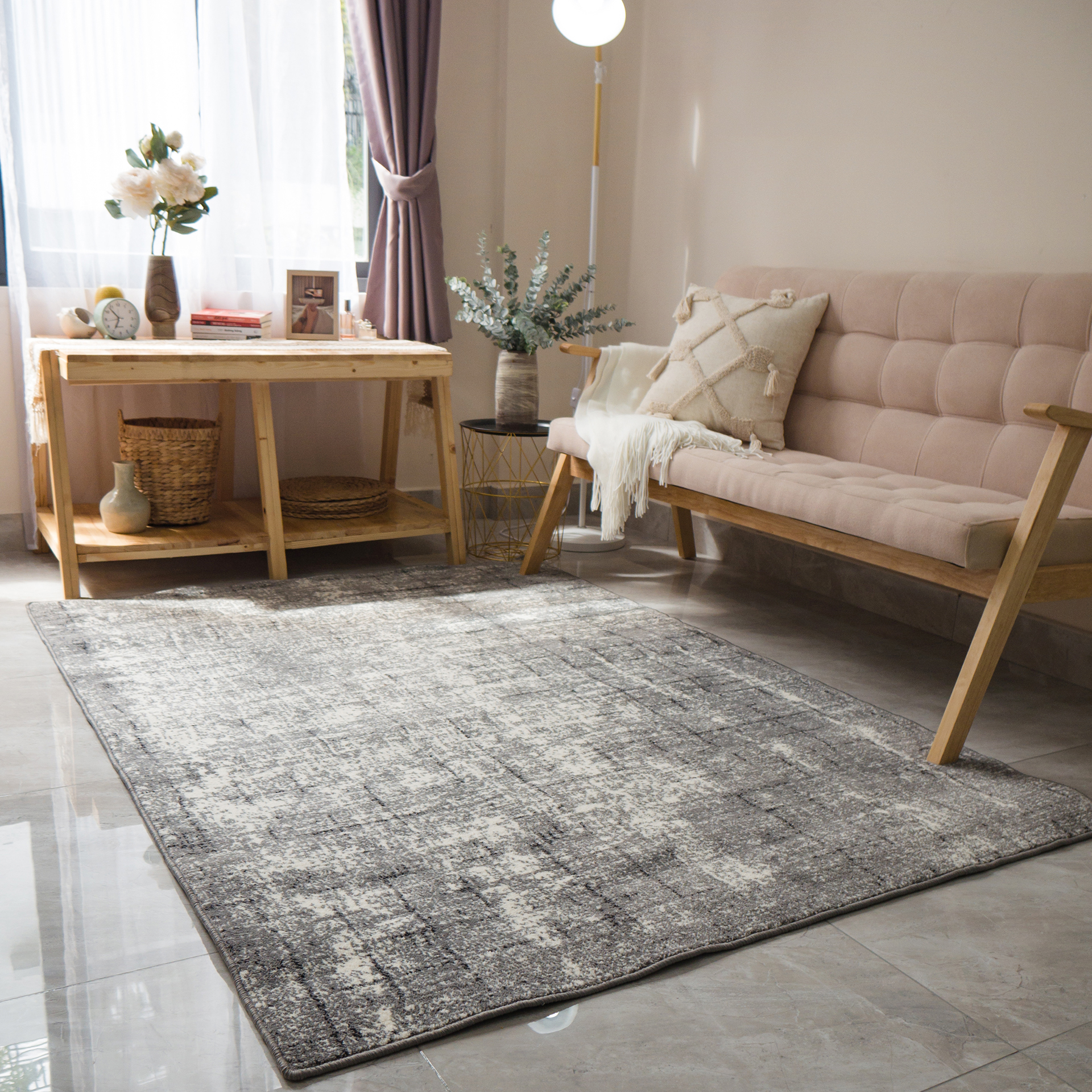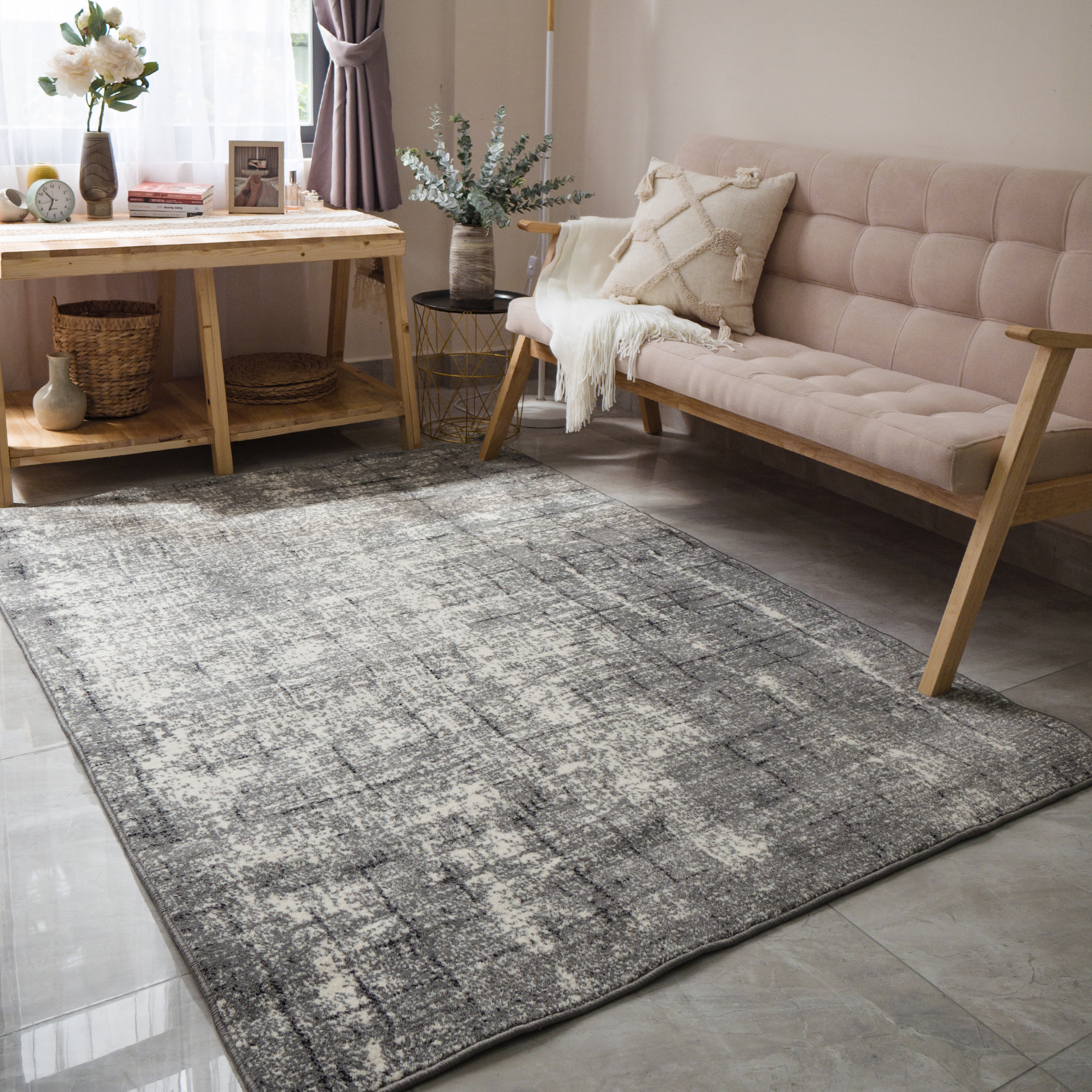 Thảm Lông Sợi Ngắn Cao Cấp Phong Cách Xám Minimalism