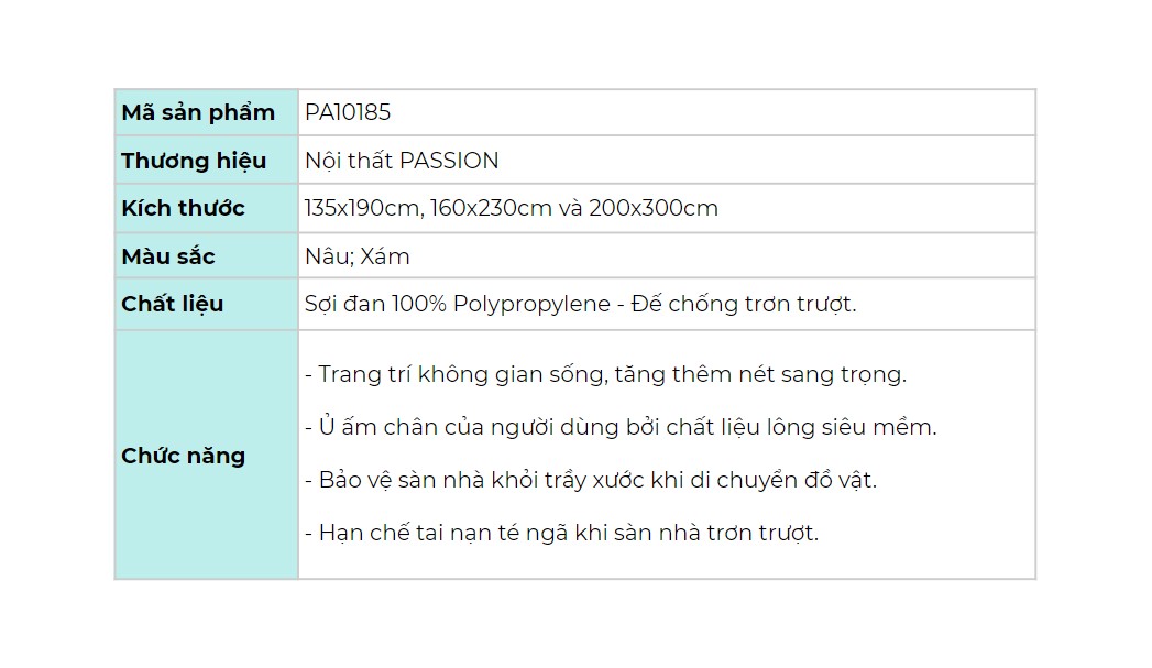 Kích thước sản phẩm: 135x190cm, 160x230cm và 200x300cm