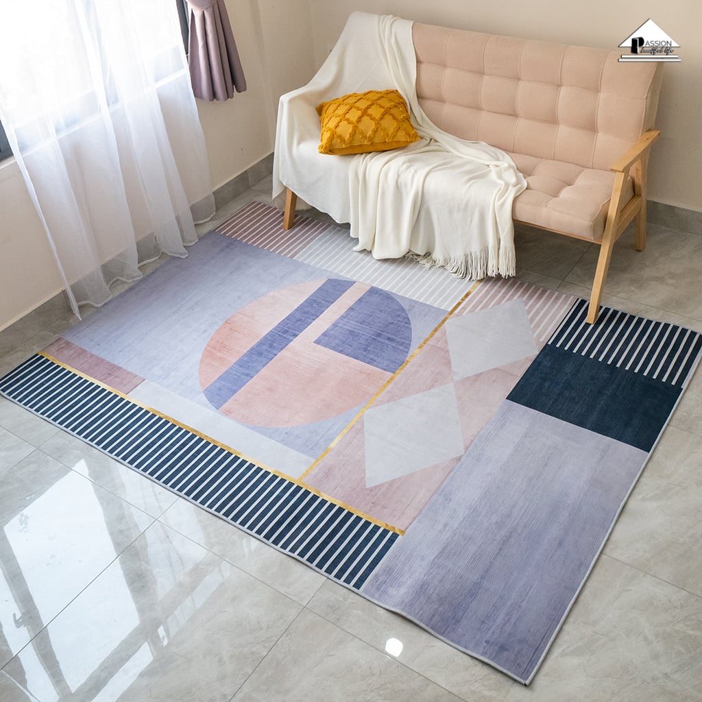 Thảm Nhung Mềm Trang Trí Phòng Hình Học Sáng Tạo Tông Hồng KHUYẾN MÃI - ƯU ĐÃI