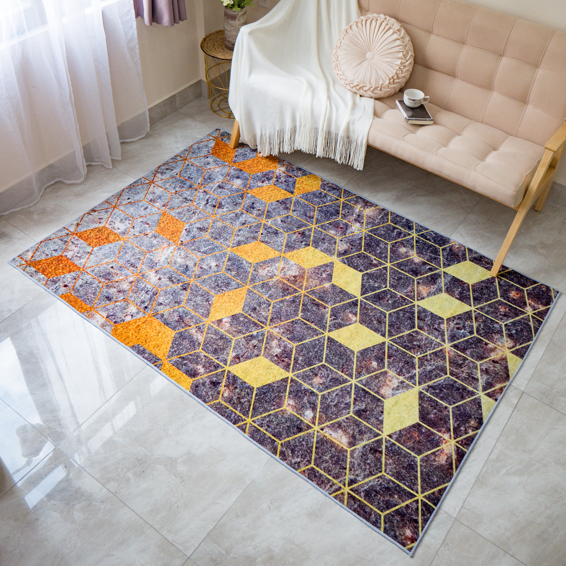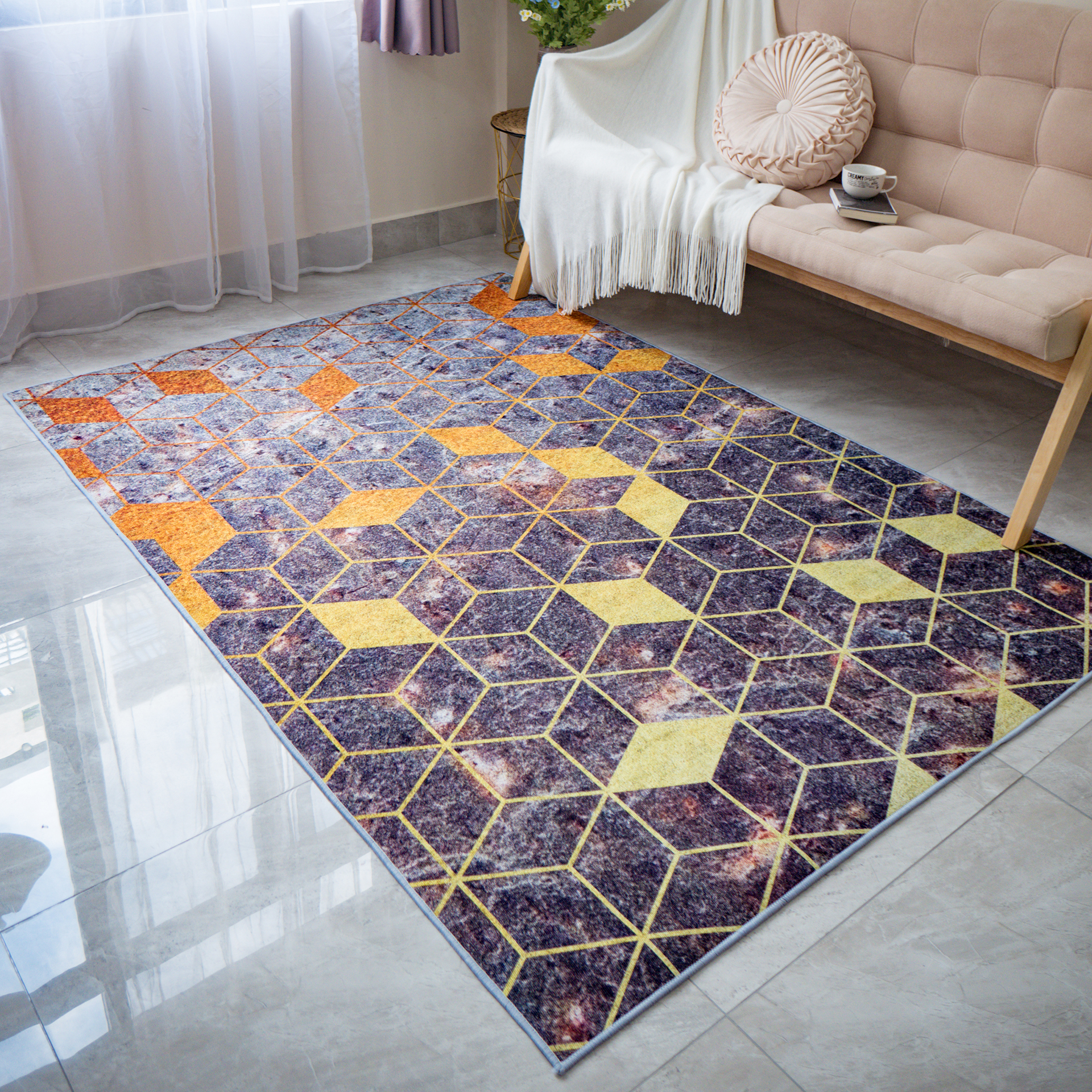 Thảm Nhung Nỉ Trải Sàn Trang Trí Phòng Khách Kim Cương Ánh Vàng