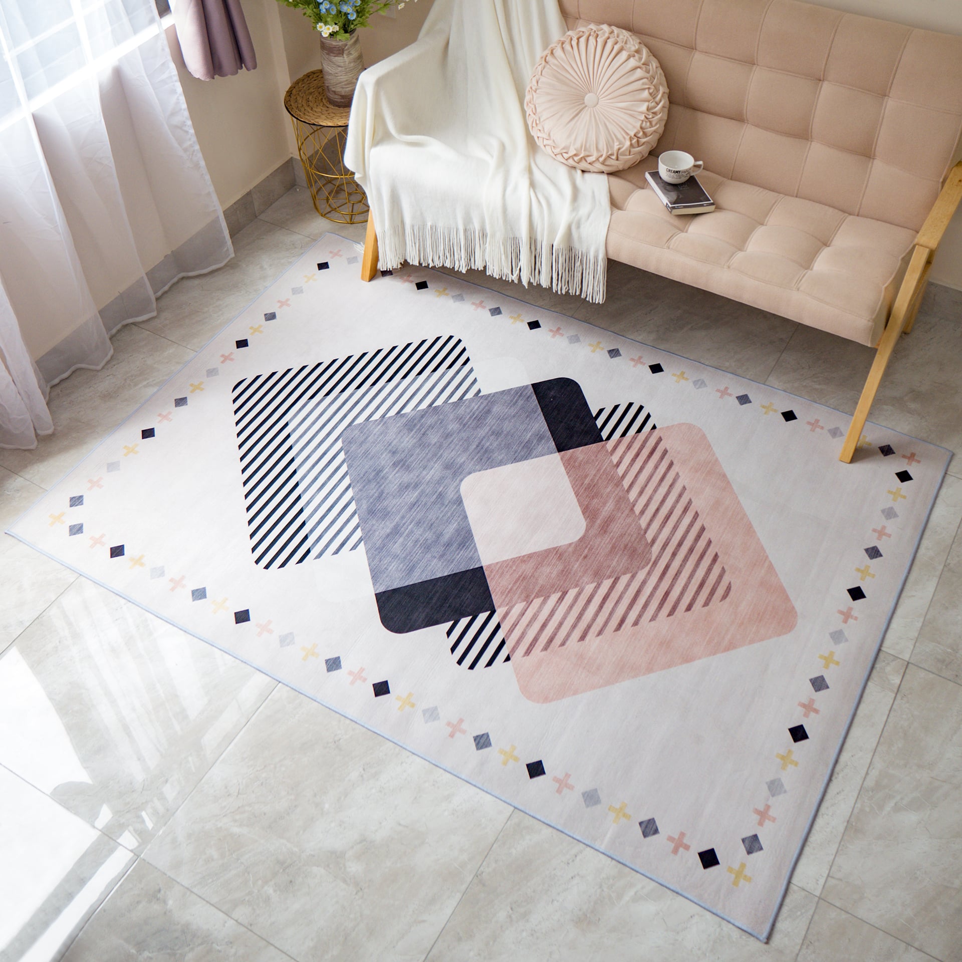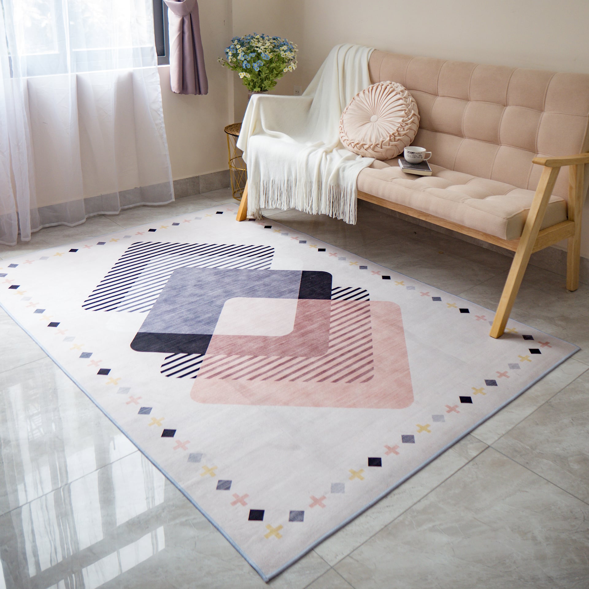 Thảm Nhung Trang Trí Phòng Khách Phòng Ngủ Hình Học Sang Trọng - Mẫu 2