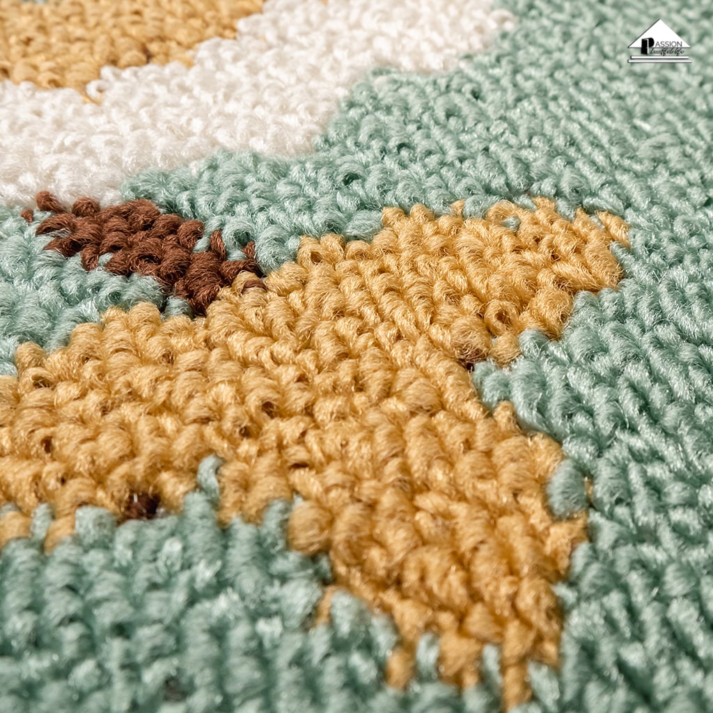 Thảm được thiết kế bằng những họa tiết hình cây xanh, hoa lá màu trung tính thích hợp với chủ nhân ưa thích sự yên tĩnh, sâu lắng, trang nhã.