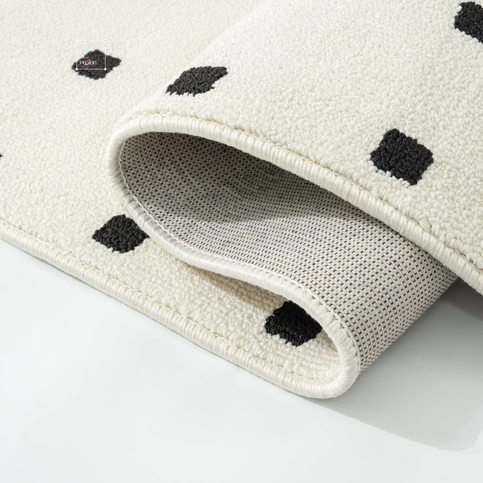 Để hiểu rõ vì sao mẫu Thảm trải sàn chống thấm phong cách tối giản Indochine chấm ô vuông lại được yêu thích đến vậy, chúng ta hãy cùng khám phá những đặc điểm nổi bật của sản phẩm từ hình thức đến chất liệu.