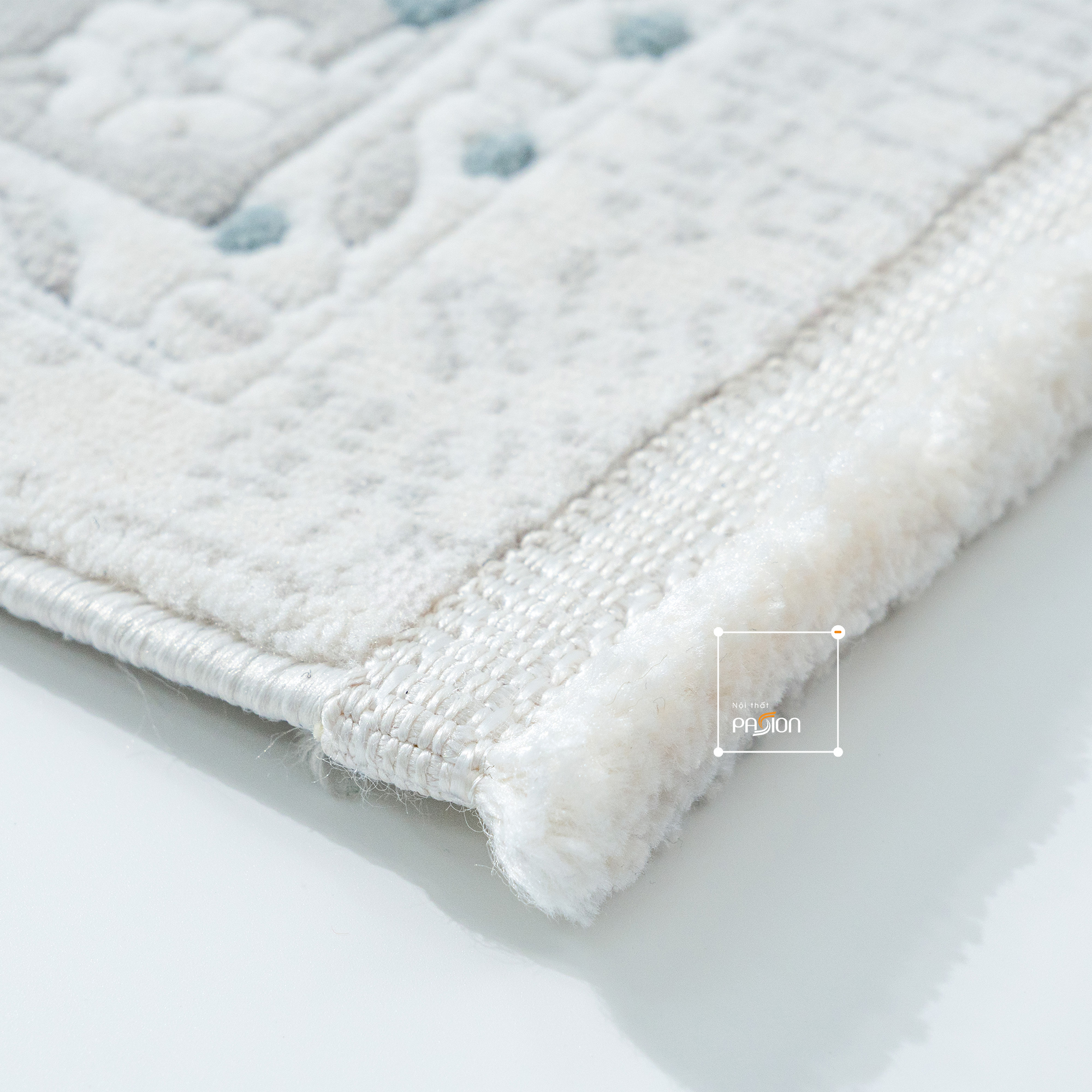 Được dệt từ sợi Polypropylene kết hợp sợi bông, thảm sở hữu độ mềm mại và đàn hồi cao, đồng thời kháng bụi và chống tĩnh điện tốt. Polypropylene là loại sợi tổng hợp được sử dụng phổ biến trong ngành dệt thảm nhờ khả năng chống mài mòn, kháng ẩm và thân thiện với da người dùng – đặc biệt an toàn cho trẻ nhỏ và thú cưng. Bên cạnh đó, sự phối hợp với sợi bông tự nhiên càng tăng thêm cảm giác êm ái, dễ chịu dưới lòng bàn chân.
