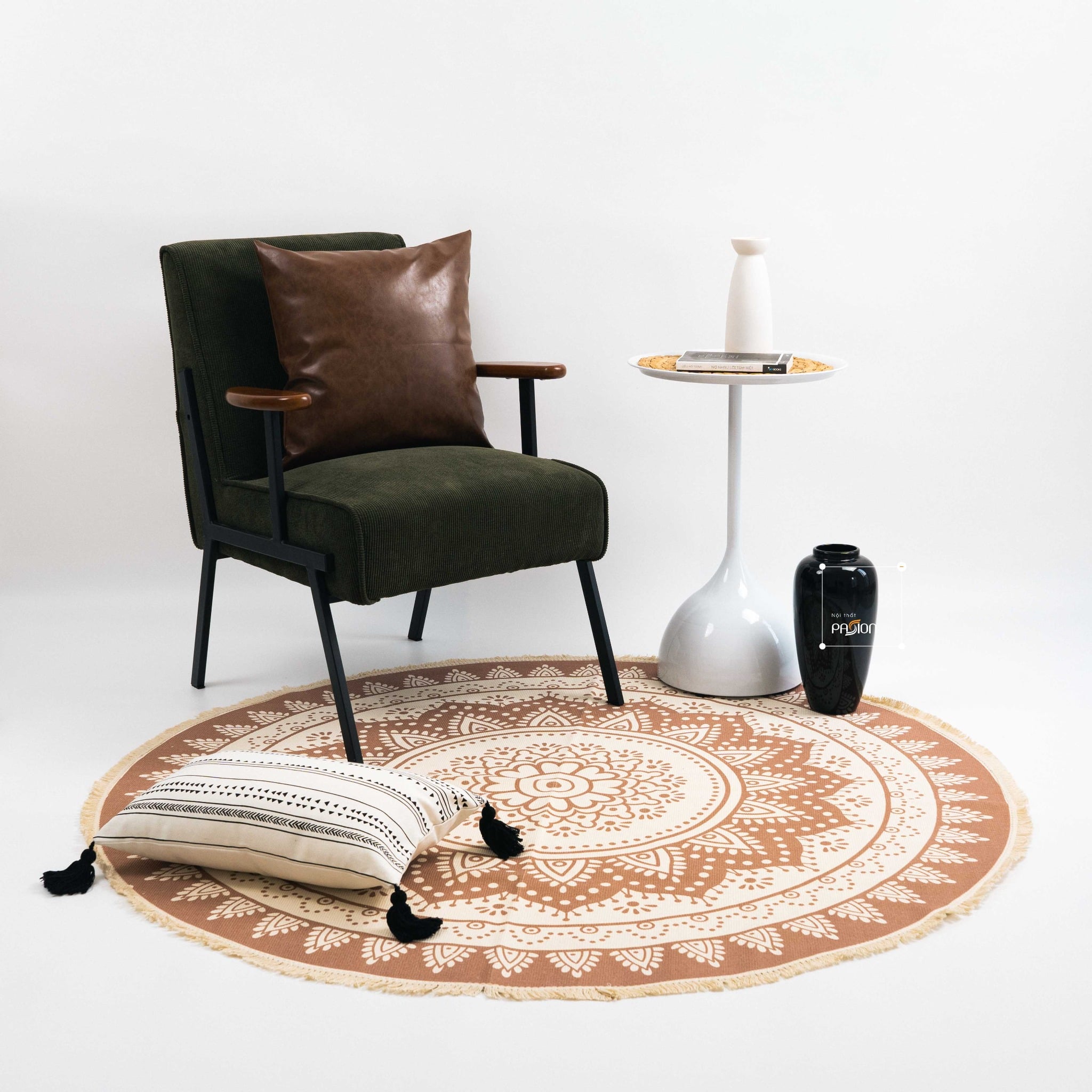 Thảm Tròn Canvas Bohemian Trang Trí