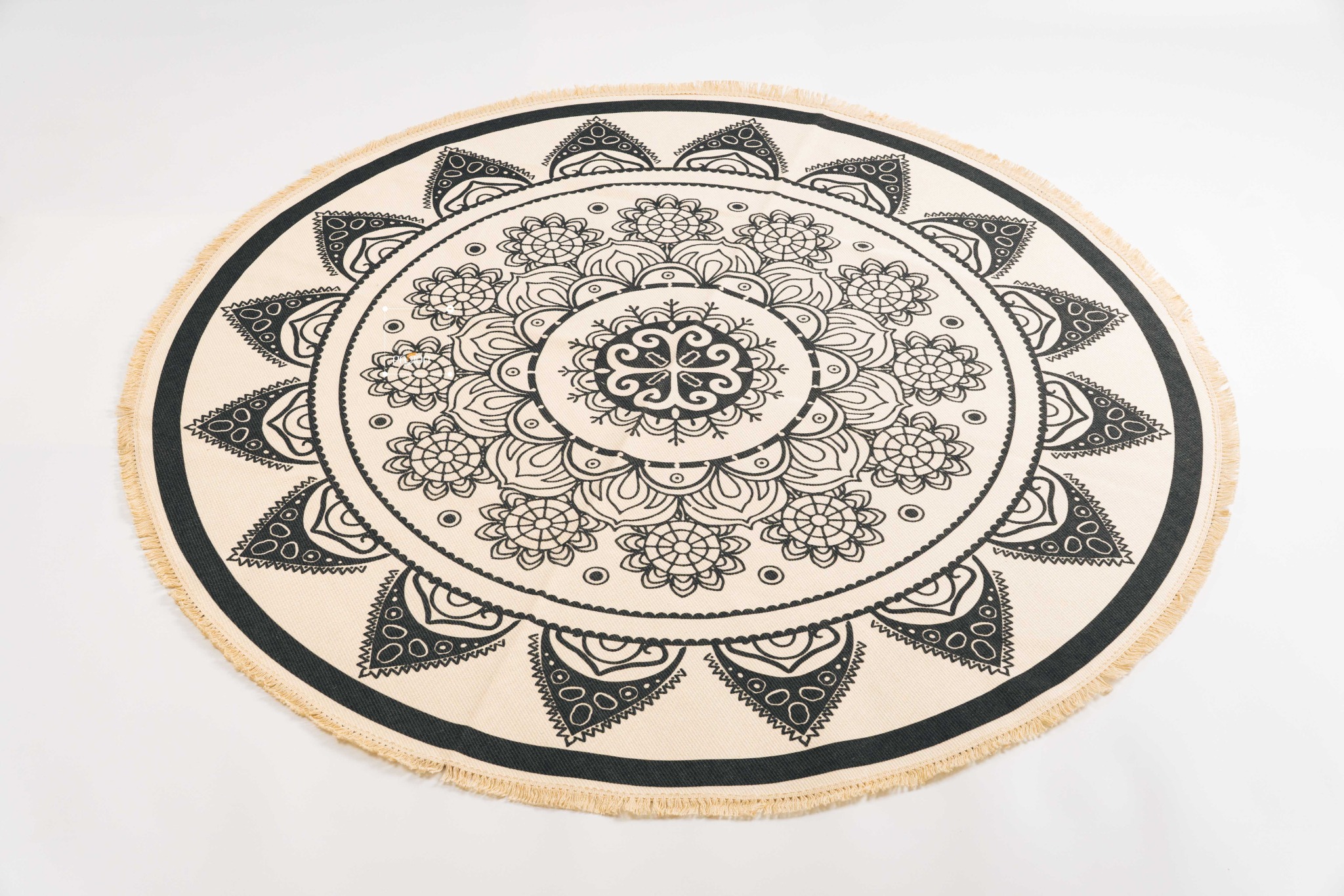 Thảm tròn trải sàn họa tiết thổ cẩm với phong cách bohemian phóng khoáng, tự do. Thảm Tròn Canvas Bohemian phối viền tua rua đậm chất vintage càng làm cho không gian sống của bạn trở trên vô cùng ấn tượng và mới lạ.