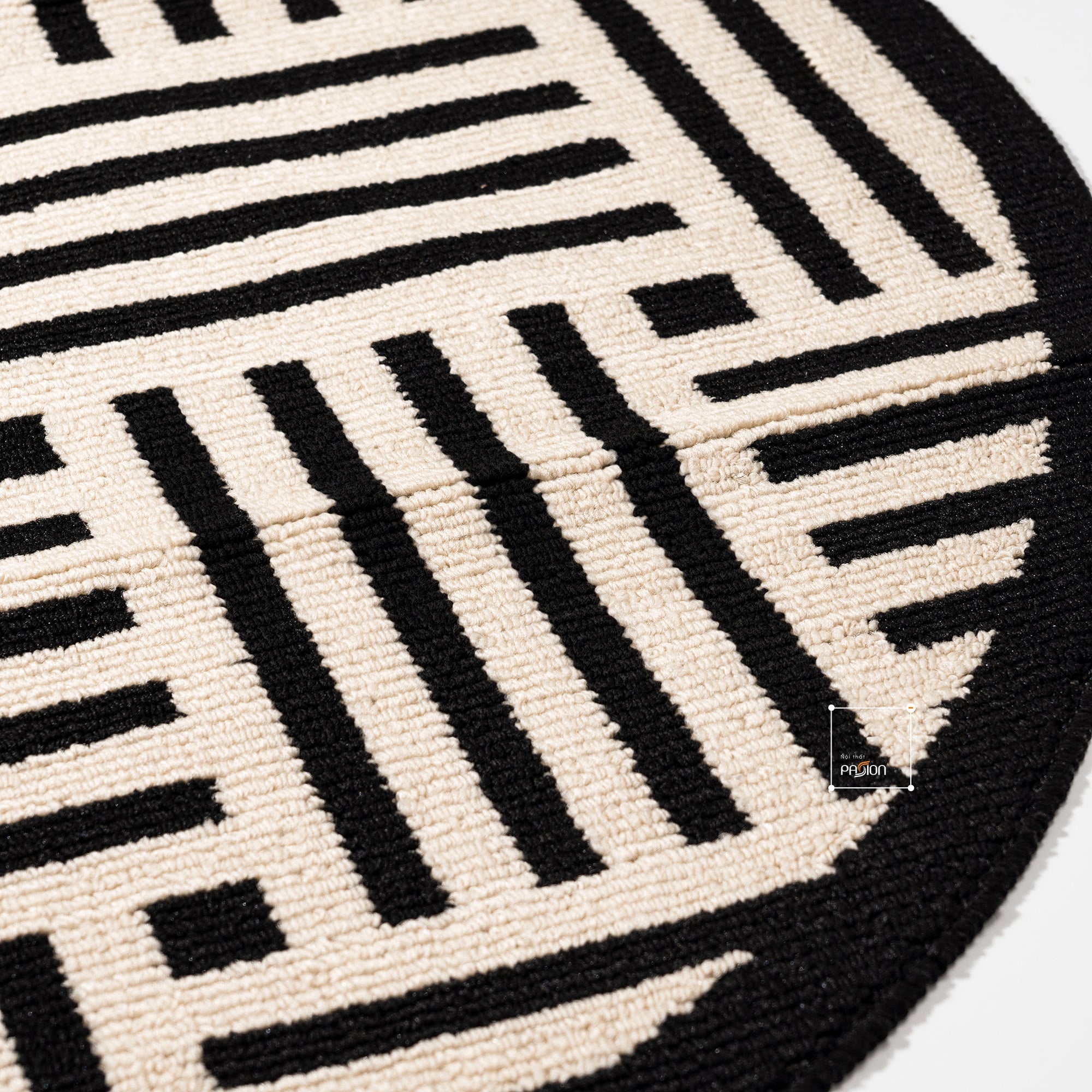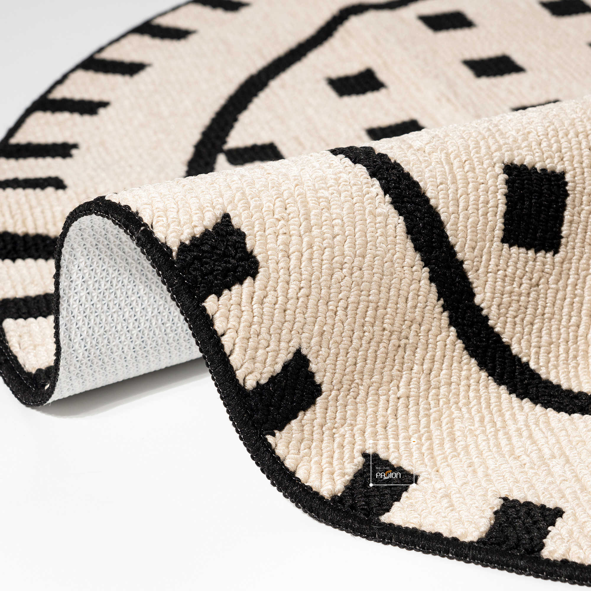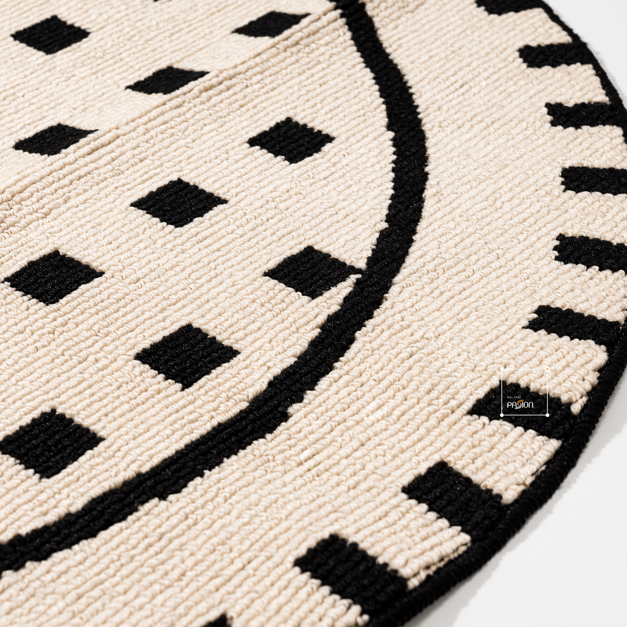 Bên cạnh đó, Thảm Tròn Polypropylene Họa Tiết Vintage 120cm sở hữu nhiều phiên bản hoa văn khác nhau, từ sọc đen trắng hiện đại, họa tiết cổ điển đến chấm vuông độc đáo. Mỗi kiểu họa tiết đều được xử lý in dệt công phu, mang lại cảm giác sang trọng và cá tính.