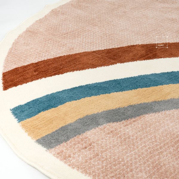 Mẫu thảm trải sàn này sẽ làm không gian sống trở nên thật rực rỡ và đa sắc thái với họa tiết cầu vồng. Một căn phòng với nội thất đa dạng về màu sắc và kiểu dáng, chắc chắn sẽ mang lại nguồn năng lượng, cảm hứng cho bạn.