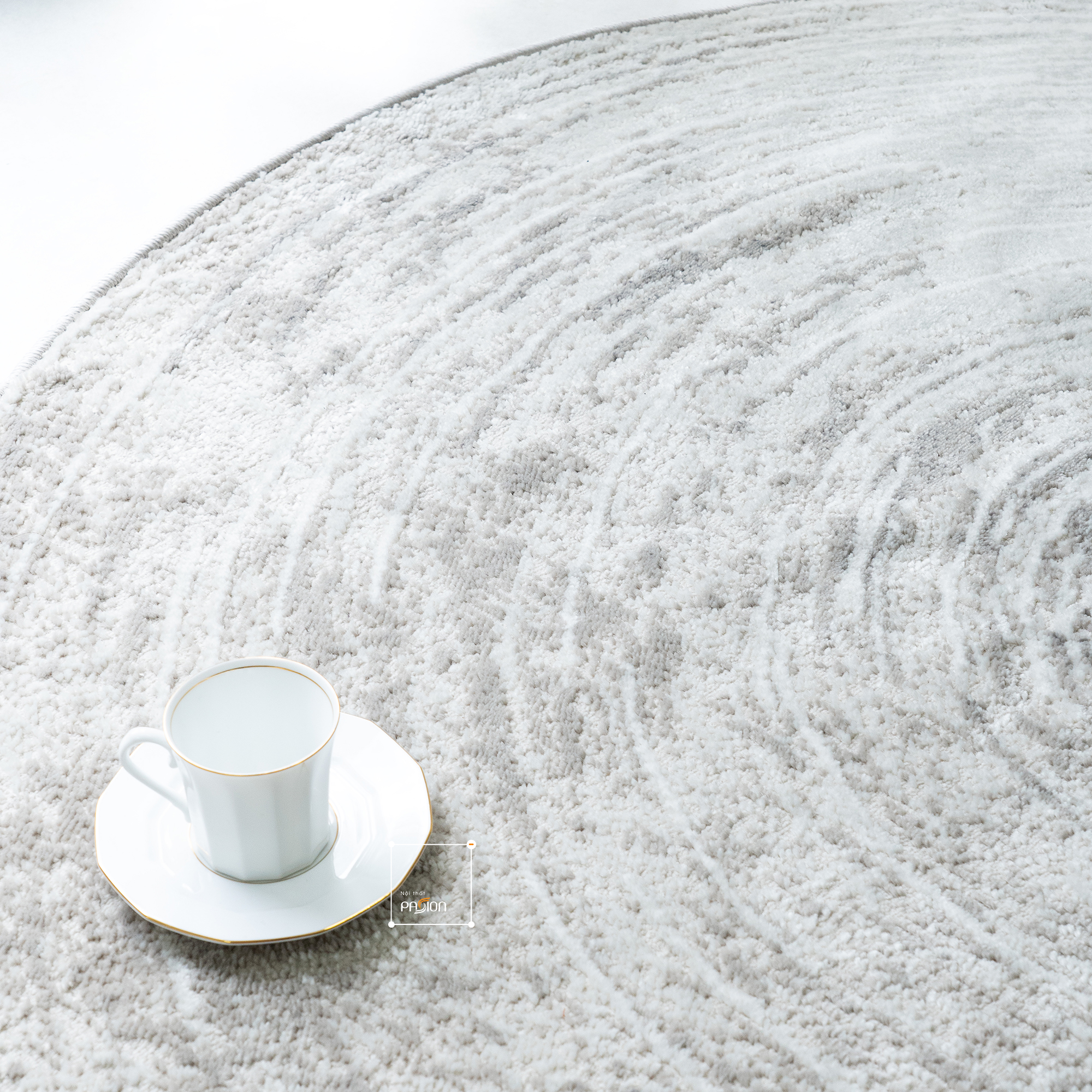 Với thiết kế vòng tròn nổi tinh tế, thảm mang đến cảm giác như những gợn sóng đang lan tỏa, khẽ khàng nhưng đầy mê hoặc. Màu xám sọc trung tính, hiện đại như những nốt nhạc trầm ổn định, hòa quyện với nhau tạo nên một bản giao hưởng nhẹ nhàng, êm đềm trong không gian sống.