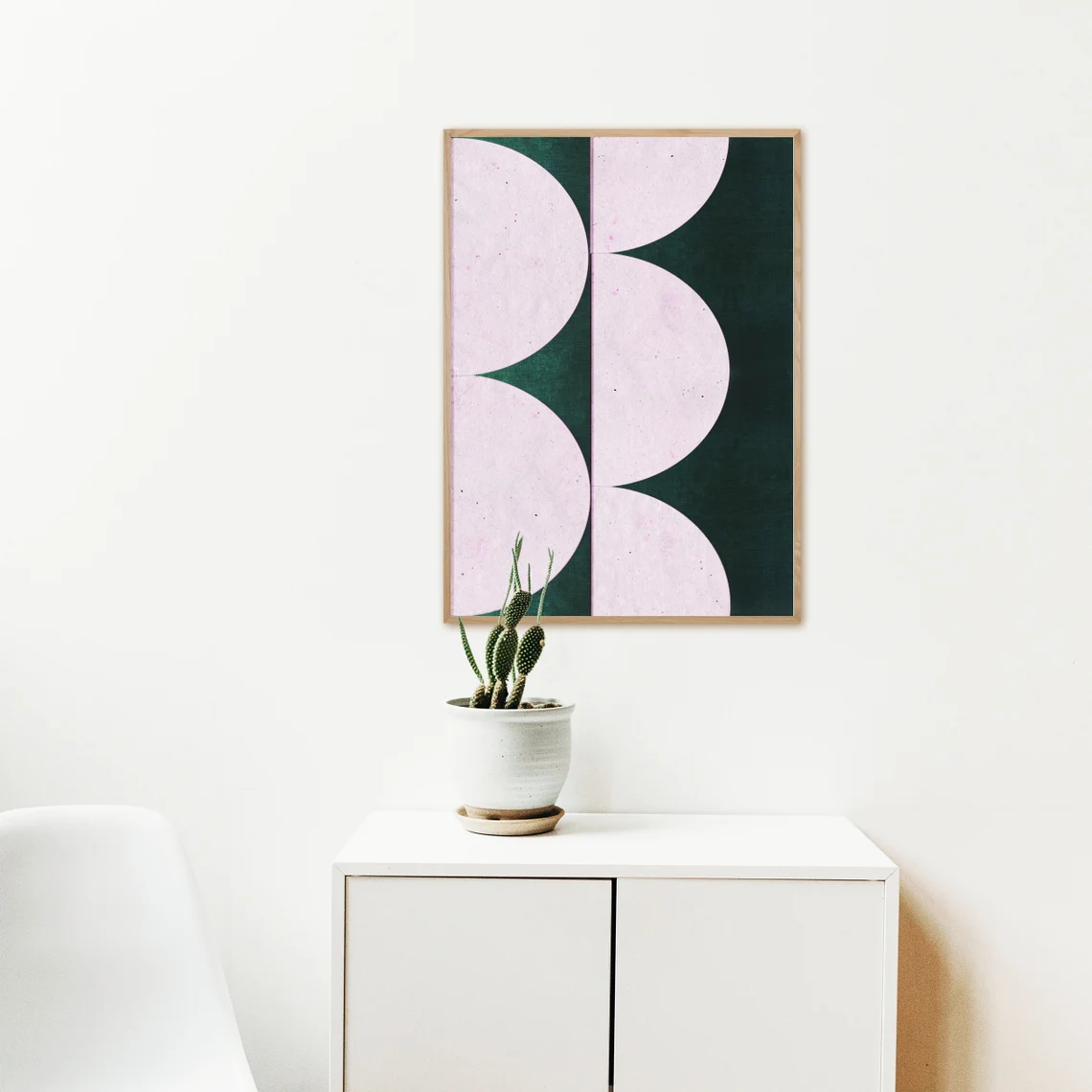 Phong cách giữa thế kỷ (Mid-Century Modern) là một trong những xu hướng thiết kế nội thất nổi bật, được yêu thích bởi sự đơn giản, tối giản và những đường nét thanh thoát. Tranh treo tường hình bán nguyệt xanh ngọc lục bảo theo phong cách này mang lại vẻ đẹp hiện đại, tinh tế và dễ dàng kết hợp với các yếu tố nội thất khác trong không gian sống. Bức tranh không chỉ thu hút ánh nhìn mà còn thể hiện sự tinh tế, gu thẩm mỹ cao của gia chủ.