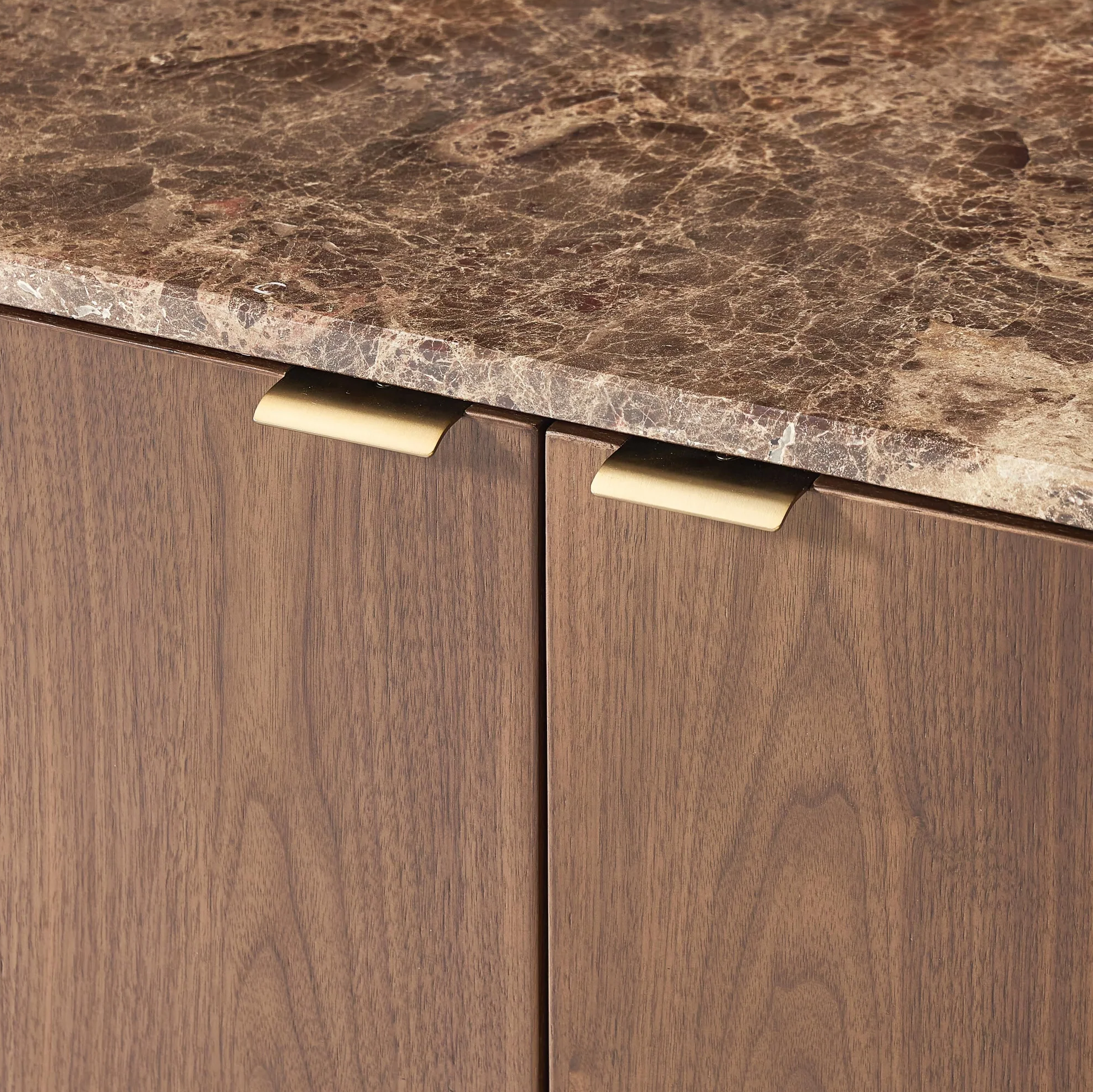 Điểm nhấn nổi bật của Luna chính là phần mặt đá sang trọng. Từng đường vân đá tự nhiên uyển chuyển như một bức tranh trừu tượng, tạo nên sự cuốn hút khó cưỡng. Khi kết hợp cùng khung gỗ phủ vernir, chiếc tủ trở thành biểu tượng của sự hài hòa giữa chất liệu thiên nhiên và phong cách hiện đại.