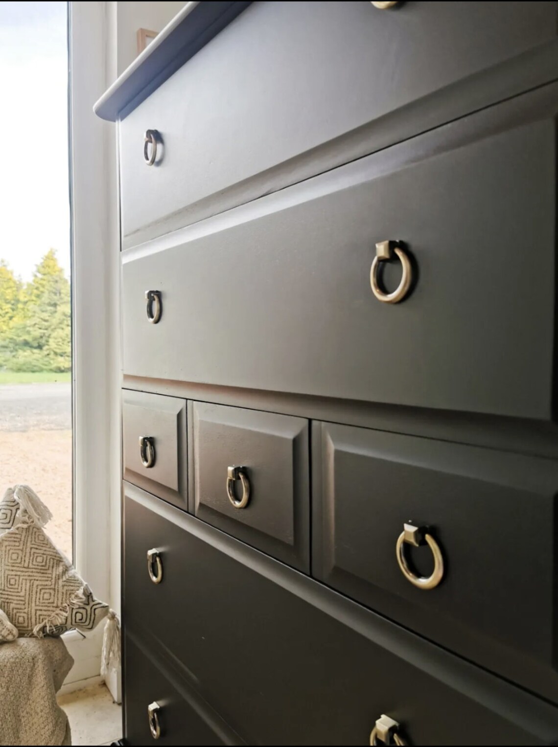 - Lớp sơn nhám: Toàn bộ bề mặt tủ được phủ lớp sơn nhám mịn, không chỉ tạo hiệu ứng thẩm mỹ tinh tế mà còn giúp hạn chế trầy xước, dễ vệ sinh và tăng độ bền cho sản phẩm. Lớp sơn còn đóng vai trò là lớp bảo vệ tự nhiên cho gỗ, giúp giữ nguyên vẻ đẹp và màu sắc qua thời gian.