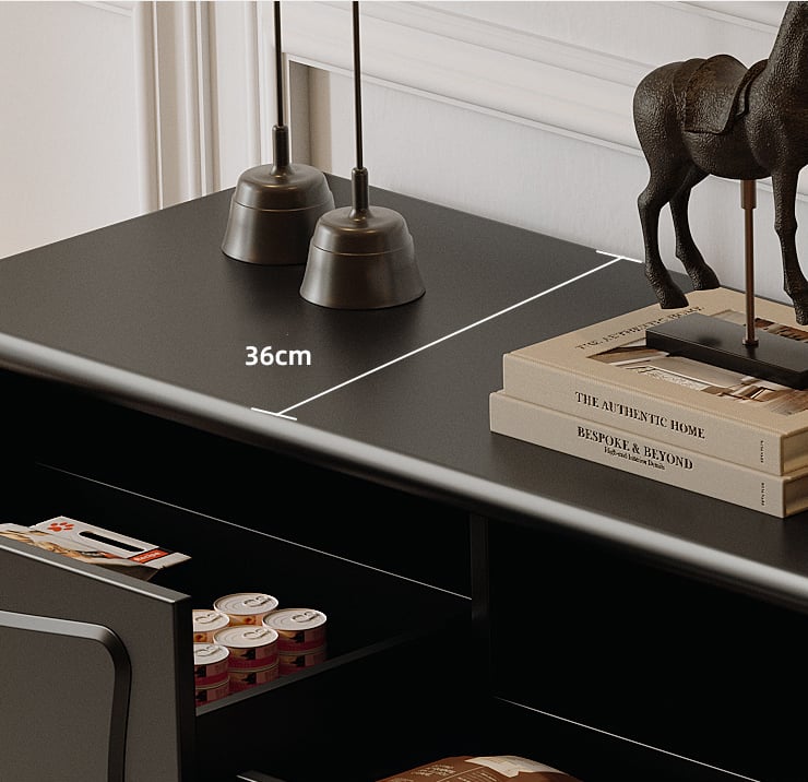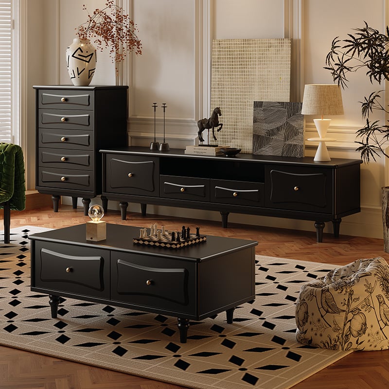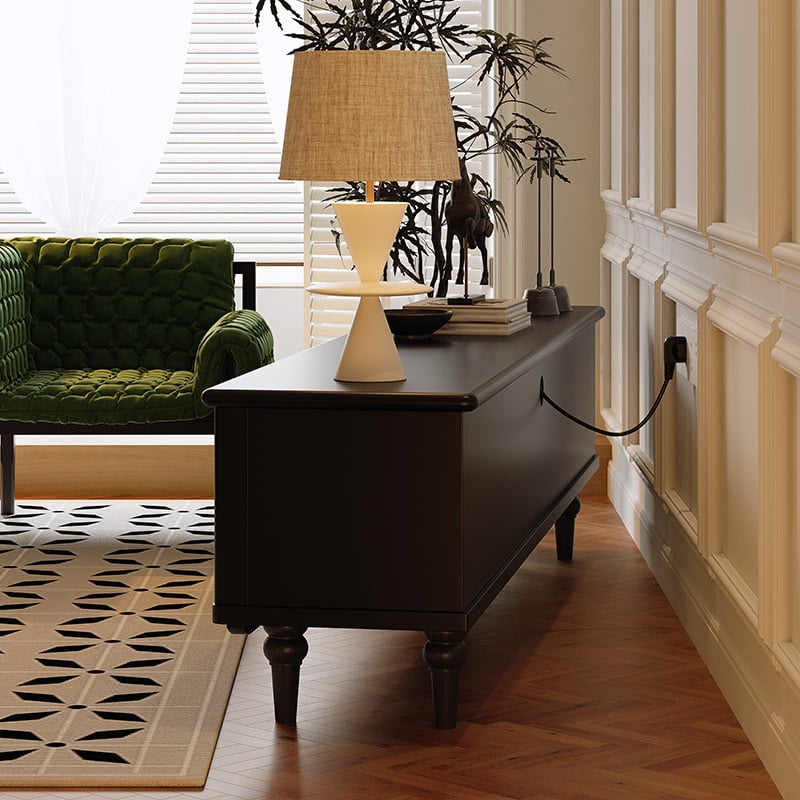 Phong cách Retro kiểu Pháp của tủ tivi này mang lại vẻ ngoài thanh lịch, cổ điển mà vẫn tinh tế. Với màu đen chủ đạo, sản phẩm dễ dàng kết hợp với các đồ nội thất khác trong phòng khách. Đường nét thiết kế tinh xảo cùng các chi tiết cổ điển gợi nhớ đến phong cách nội thất Pháp cổ điển, tạo nên sự độc đáo và sang trọng. Đặc biệt, chiếc tủ này không chỉ giúp lưu trữ mà còn tạo nên điểm nhấn nổi bật cho không gian sống.