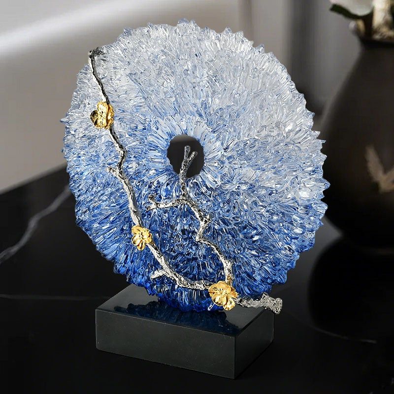Tượng san hô màu gradient xanh dương trong suốt phối hoa mai không chỉ là vật trang trí, mà còn là tuyên ngôn thẩm mỹ mang hơi thở đại dương hiện đại. Sự chuyển sắc tinh tế từ xanh nhạt đến xanh đậm tạo cảm giác thư giãn, sâu lắng và đầy chiều sâu không gian. Tại Nội thất Passion, mỗi mẫu tượng san hô được tuyển chọn kỹ lưỡng để phù hợp với nhiều phong cách decor, từ tối giản đến luxury.