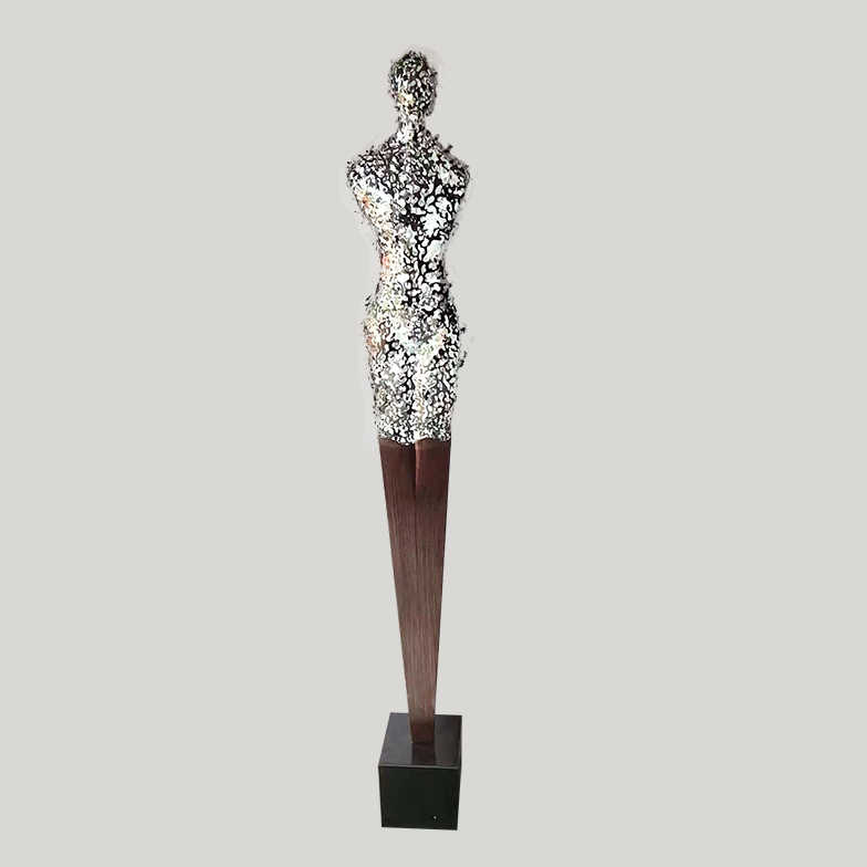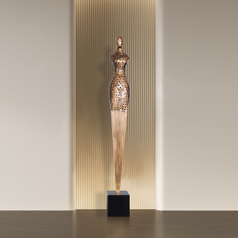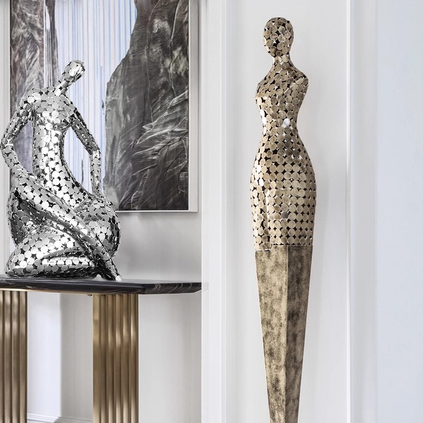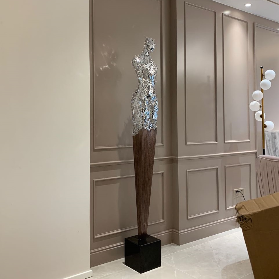Tượng Điêu Khắc Lớn Nghệ Thuật Hình Nữ Thần Đương Đại là tác phẩm nghệ thuật đương đại kết hợp giữa thiết kế tinh tế và kỹ thuật chế tác kim loại cao cấp. Sản phẩm được làm từ sắt chắc chắn, phủ lớp mạ đồng và mạ điện bạc, tạo hiệu ứng ánh kim sang trọng và hiện đại.