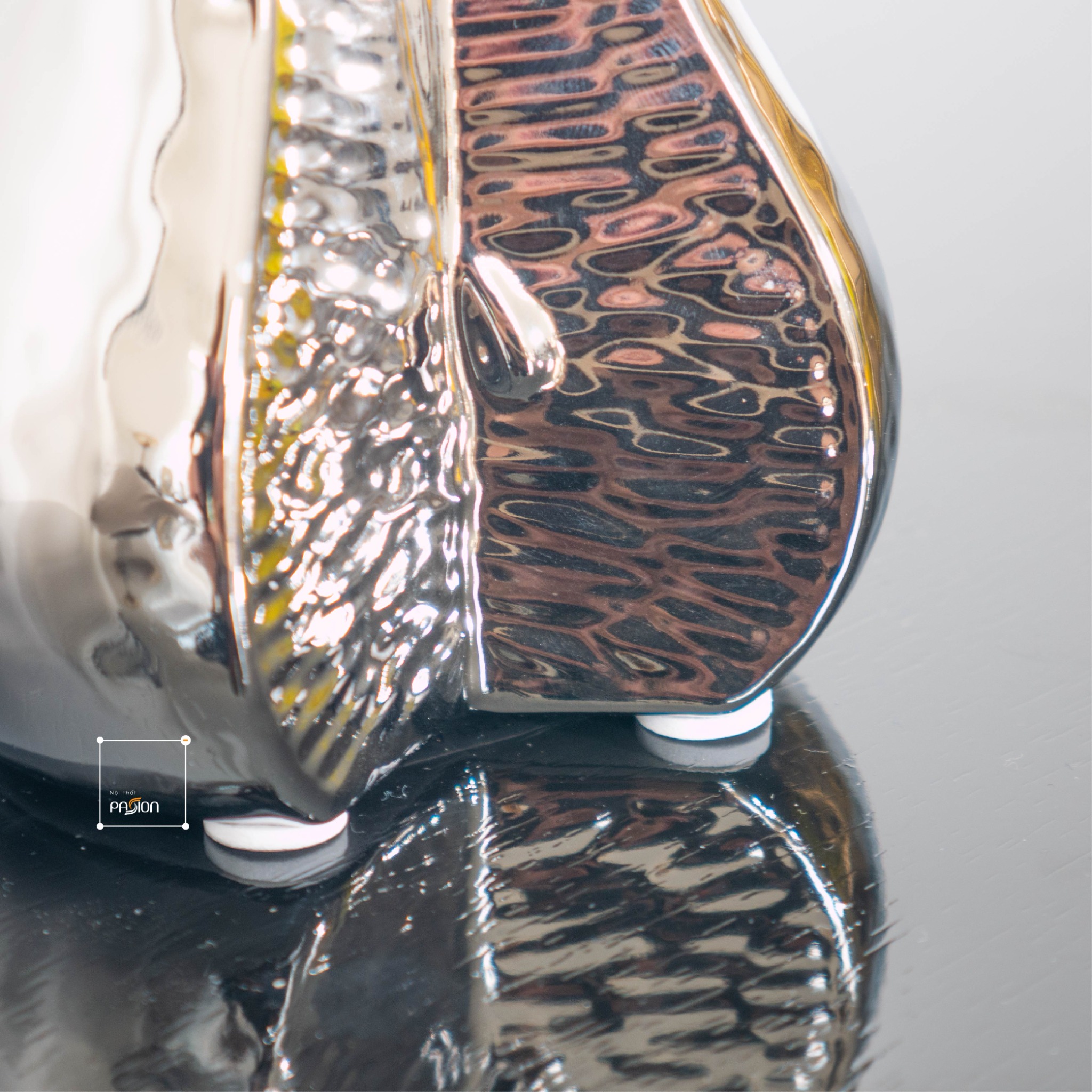 Được làm từ nhựa cây phủ bạc cao cấp, từng lớp bạc ánh lên vô cùng sang trọng, mang đến không gian bắt mắt và cực kỳ thú vị. Tuy có thiết kế nhỏ nhắn, chỉ  khoảng 10cm, nhưng chúng lại toát lên vẻ đẹp độc tháo, thu hút mọi ánh nhìn. Bạn có thể sử dụng sản phẩm để decor trong nhiều không gian khác nhau như: trang trí bàn phòng khách, phòng ngủ, kệ tủ hay phòng đọc sách,... thâm chí bạn có thể sử dụng làm quà tặng cũng vô cùng hợp lý luôn nha.