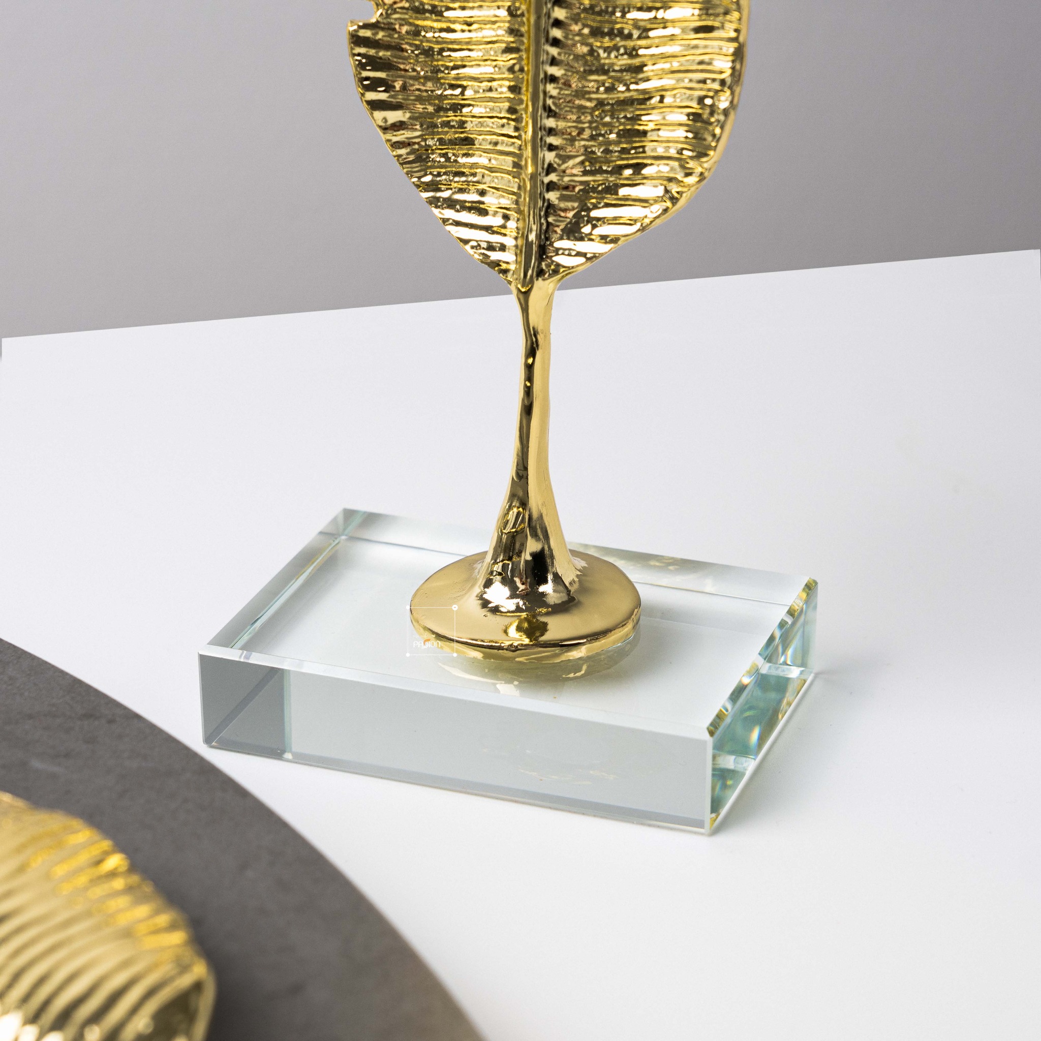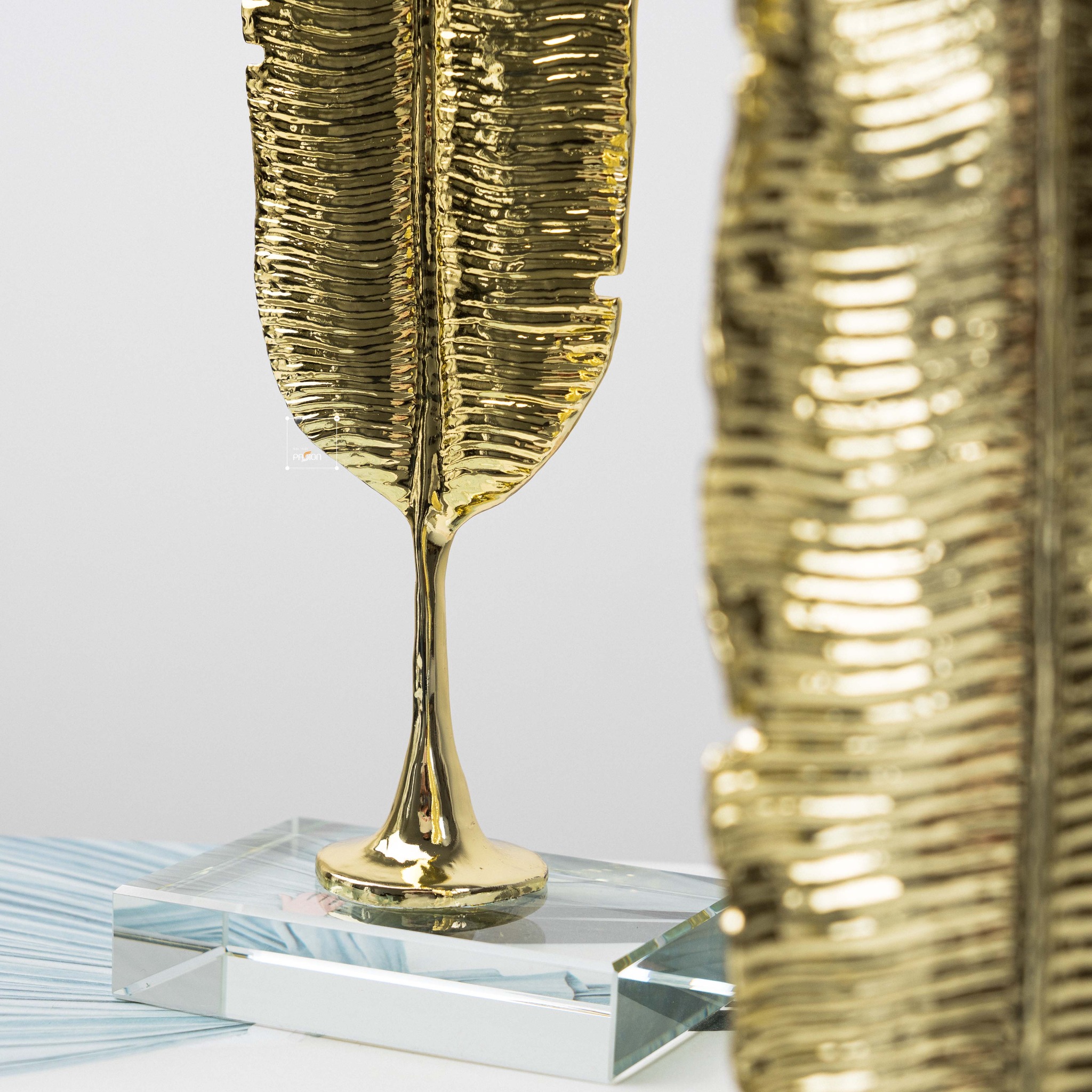 Tượng trang trí chiếc lá chuối ánh vàng đế pha lê được lấy cảm hứng từ vẻ đẹp tự nhiên của chiếc lá chuối. Hình ảnh chiếc lá chuối được cách điệu một cách tinh tế, kết hợp với ánh vàng óng ánh của pha lê tạo nên một tác phẩm nghệ thuật độc đáo và đầy cuốn hút.