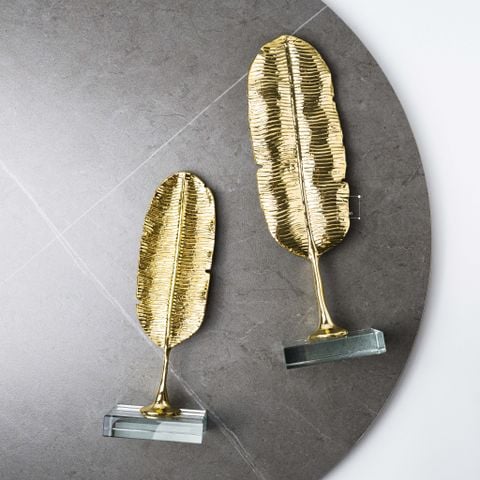 Tượng Trang Trí Chiếc Lá Chuối Ánh Vàng Đế Pha Lê - Phong Cách Decor Sang Trọng Châu Âu