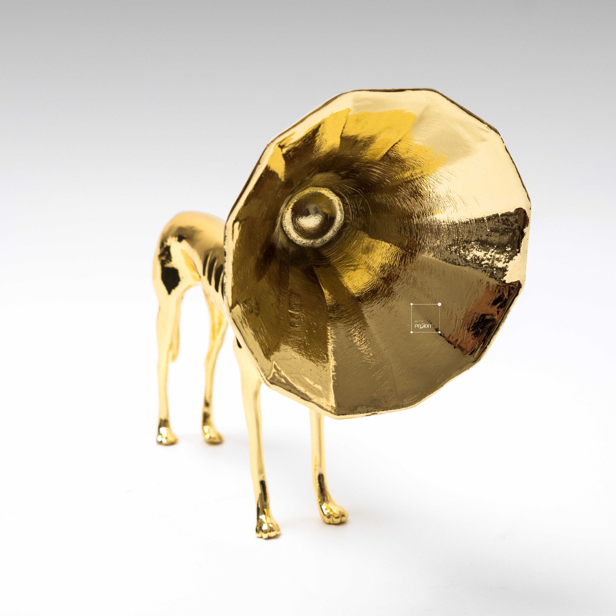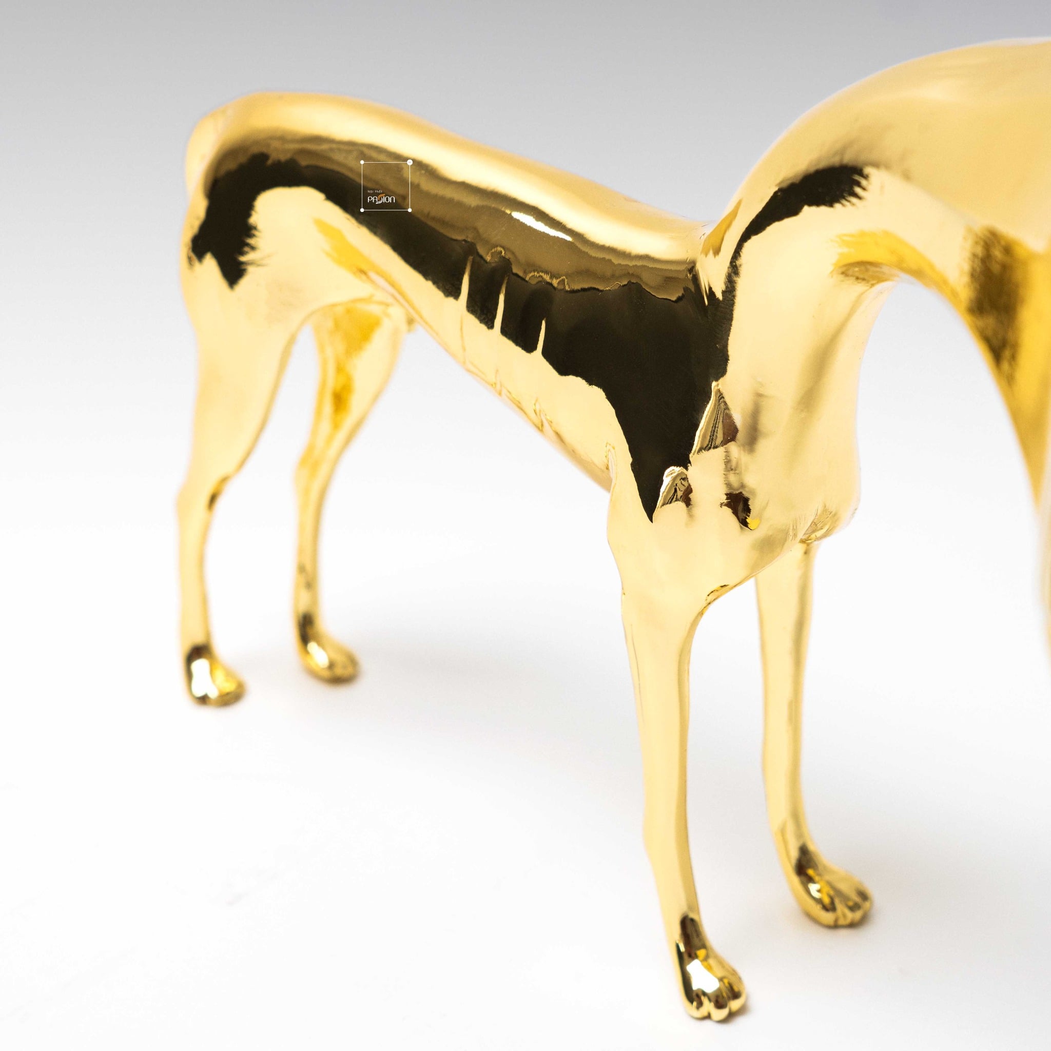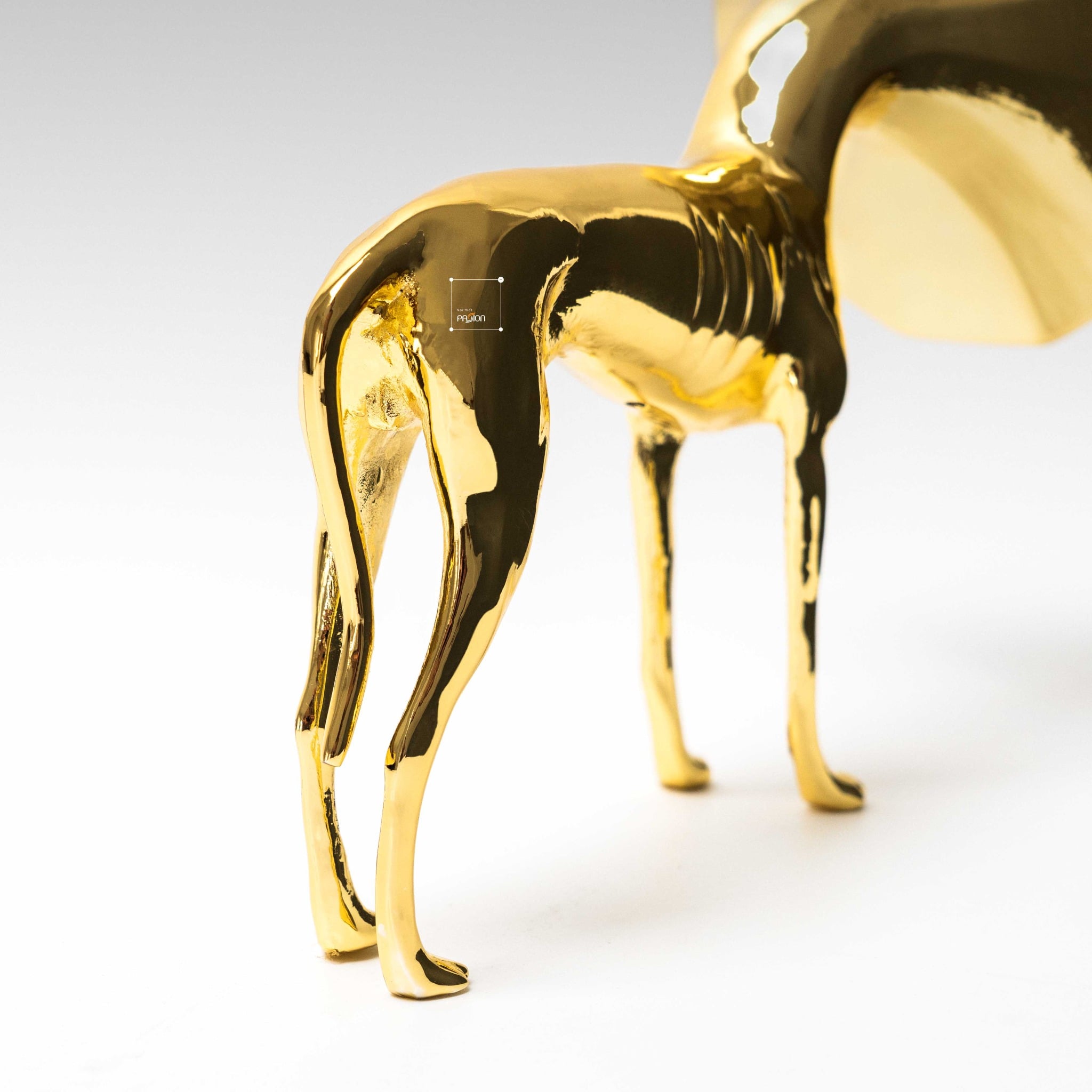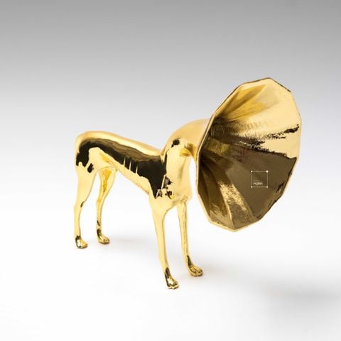 Tượng được phủ lớp mạ điện vàng, mang lại sự sang trọng và quý phái cho sản phẩm. Màu vàng lấp lánh của tượng giúp tạo điểm nhấn ấn tượng trong không gian, đồng thời dễ dàng phối hợp với các phong cách nội thất khác nhau. Tượng chó trumpet vàng có thể làm nổi bật những không gian như phòng khách, bàn làm việc, kệ trang trí, hay bàn tiệc trong những dịp đặc biệt.