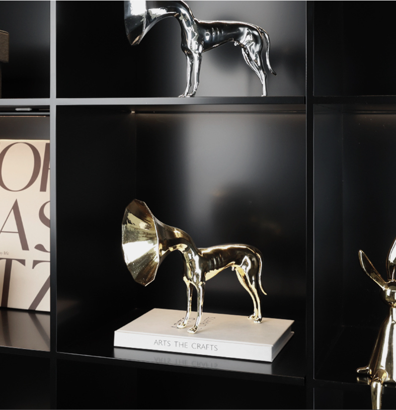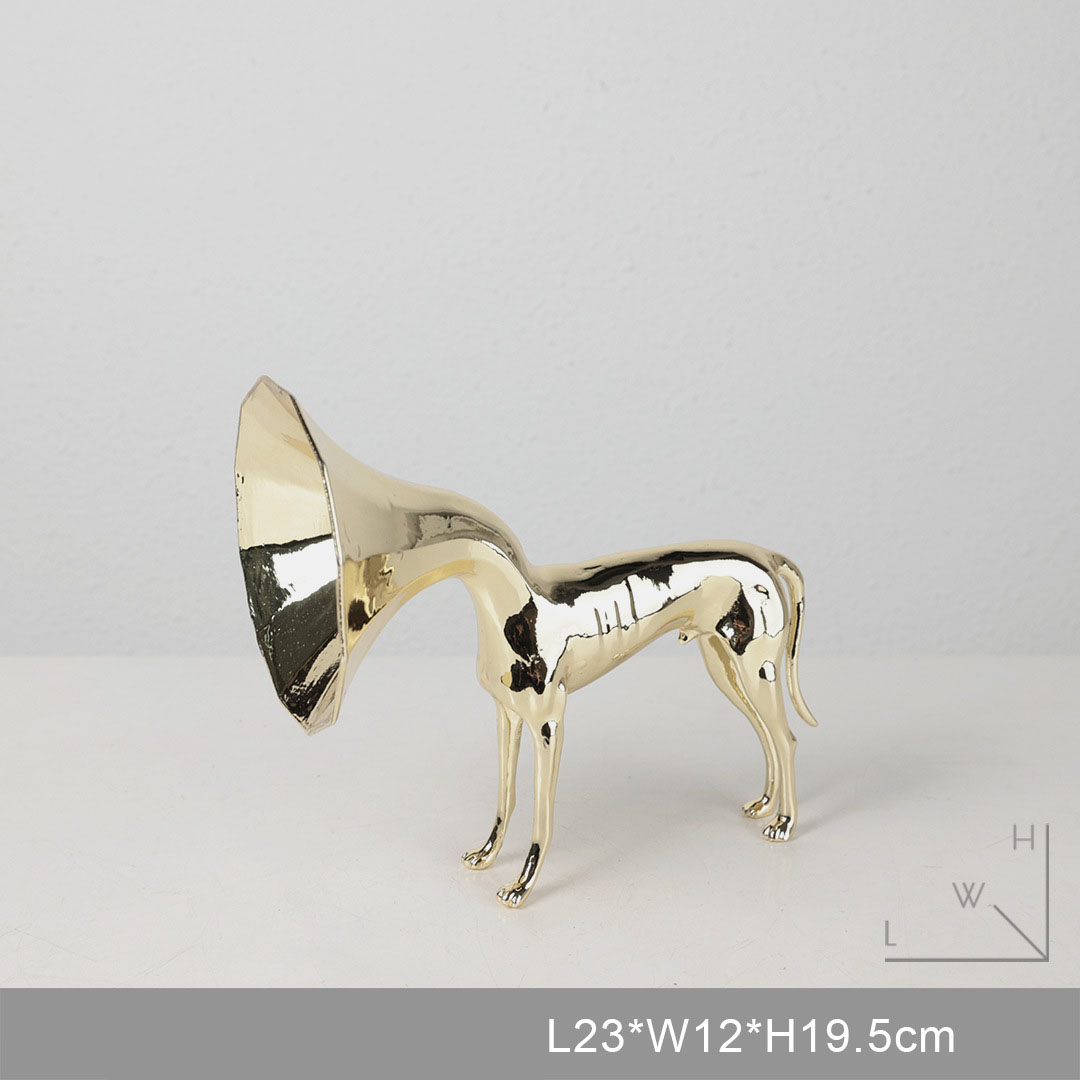 Tượng trang trí hình chó trumpet gây ấn tượng mạnh mẽ với thiết kế tinh xảo. Chú chó đang thổi kèn trumpet với dáng vẻ khỏe khoắn và uyển chuyển, mang lại cảm giác vui tươi và năng động. Sự kết hợp giữa hình ảnh chú chó dễ thương và kèn trumpet – một nhạc cụ biểu tượng của sự lôi cuốn và âm nhạc – tạo ra một tác phẩm nghệ thuật độc đáo, phù hợp với những không gian hiện đại và sang trọng.