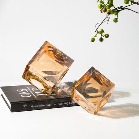 - Hiệu ứng ánh sáng đa chiều: Pha lê trong suốt màu hổ phách là lựa chọn đắt giá cho sản phẩm này. Mỗi mặt cắt của khối Rubik khi đặt dưới ánh sáng sẽ tạo ra các tia phản xạ, khúc xạ khác nhau – mang lại hiệu ứng “vỡ ánh sáng” lung linh, như một viên ngọc quý rực rỡ. Đây là điểm nổi bật khiến sản phẩm không chỉ đẹp mà còn sống động, luôn thay đổi tùy điều kiện ánh sáng xung quanh.