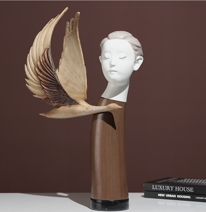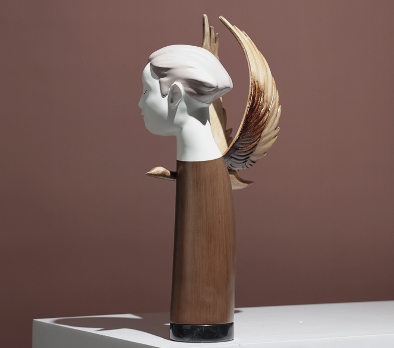 - Hình dáng thiên thần đầy cảm hứng: Tượng được thiết kế với đường nét đôi cánh mềm mại, uyển chuyển, tạo nên cảm giác phá cách và độc đáo.