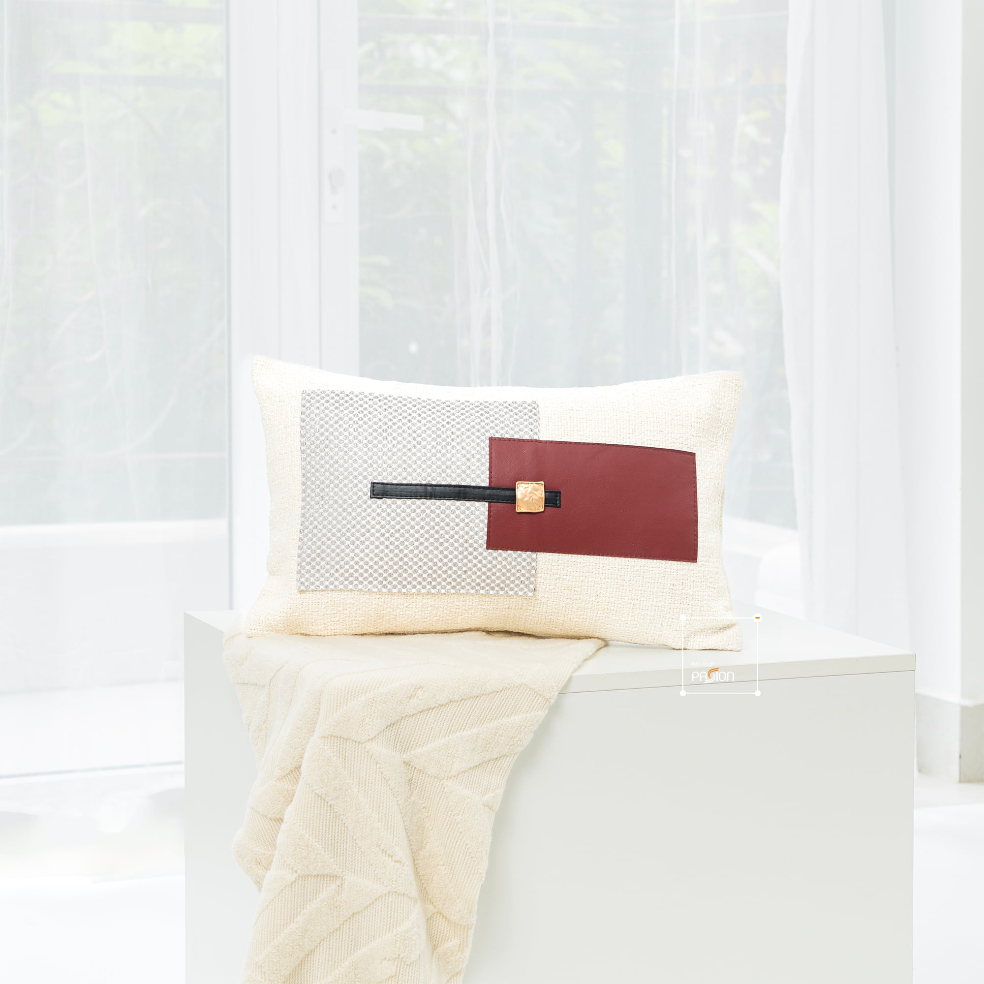 Được làm từ vải dệt phối da cùng với vải jacquard dệt cao cấp, chiếc gối này không chỉ toát lên vẻ đẹp sang trọng mà còn mang lại sự mềm mại và bền bỉ. Vải dệt phối da tạo nên một bề mặt mềm mịn, chắc chắn, đồng thời thể hiện sự đẳng cấp thông qua từng đường may tỉ mỉ. Vải jacquard dệt với họa tiết caro sang trọng không chỉ tạo nên chiều sâu cho thiết kế mà còn làm nổi bật sự tinh xảo trong từng chi tiết.