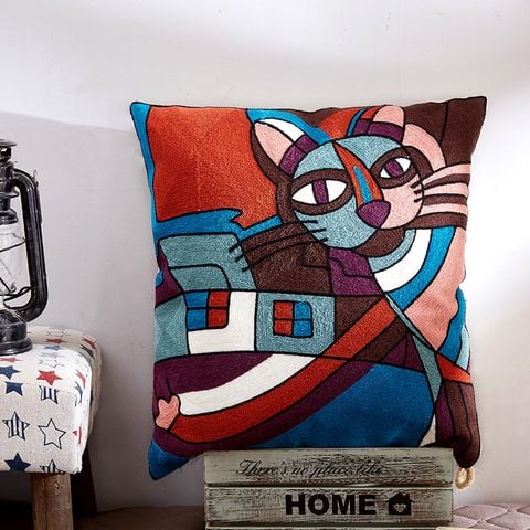 Vỏ Gối sofa tựa lưng trang trí linen thêu len cô gái