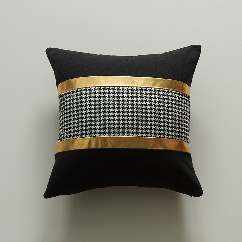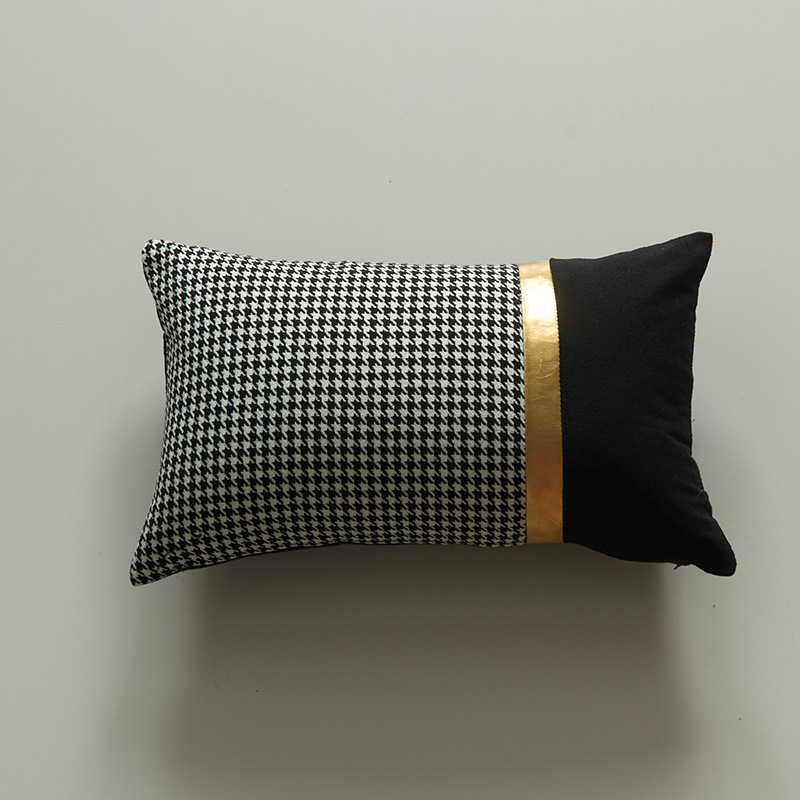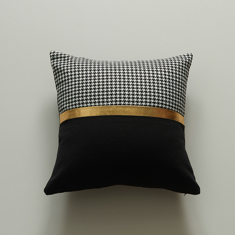 Vỏ Gối Tựa Lưng Áo Gối Trắng Đen Phối Viền Vàng Phong Cách Đơn Giản