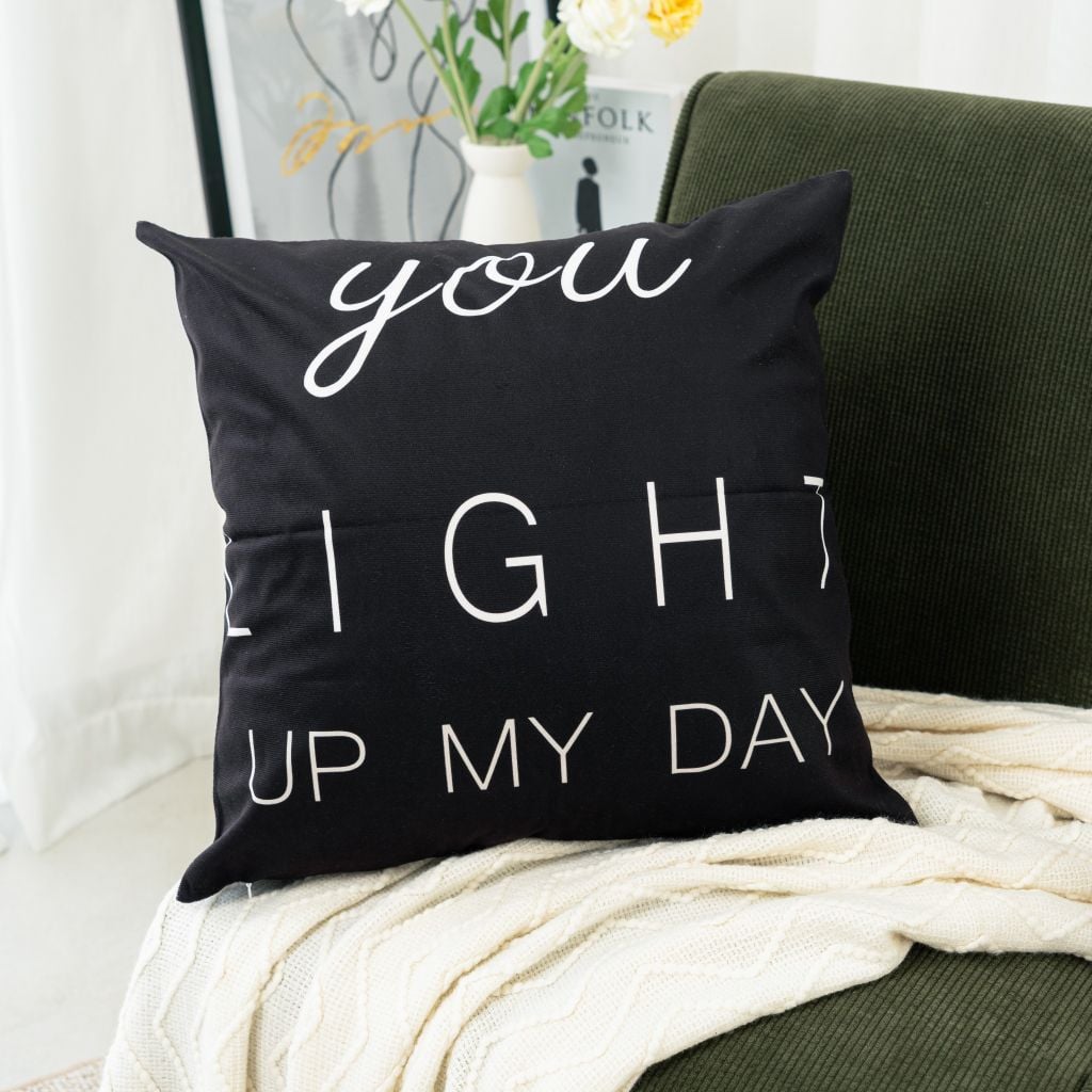 Vỏ Gối Tựa Lưng Bắc Âu Nhung Nỉ In Màu 2 Mặt Đen Trắng Sang Trọng