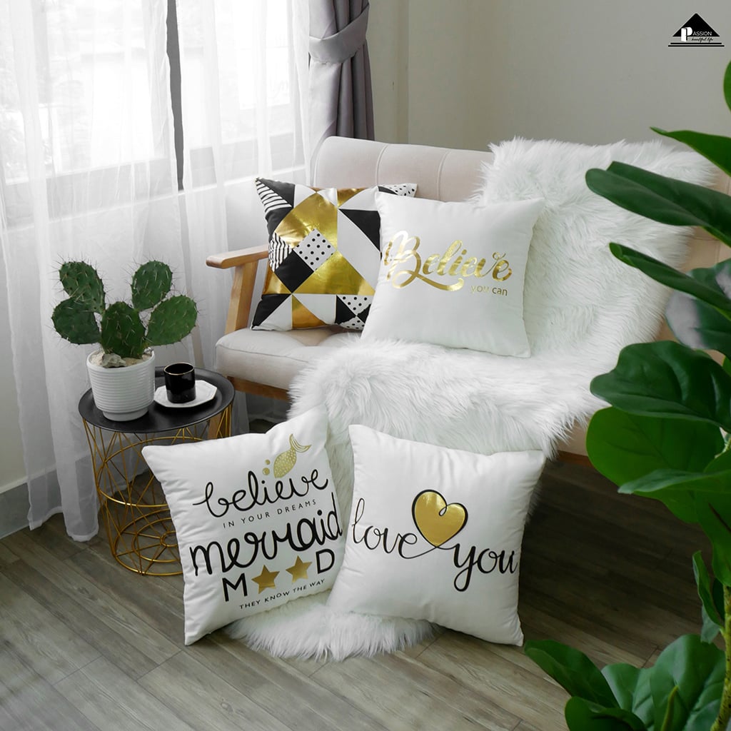 Vỏ Gối Tựa Lưng Bronzing Lazer Nền Trắng Thiết Kế Đơn Giản Hiện Đại