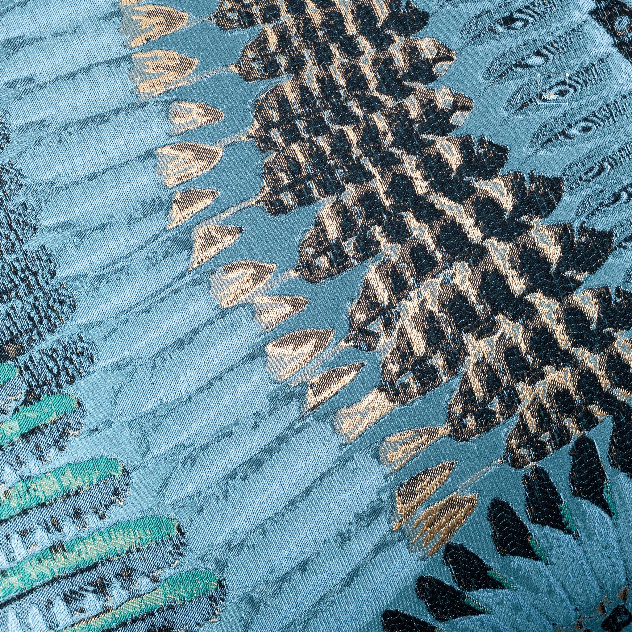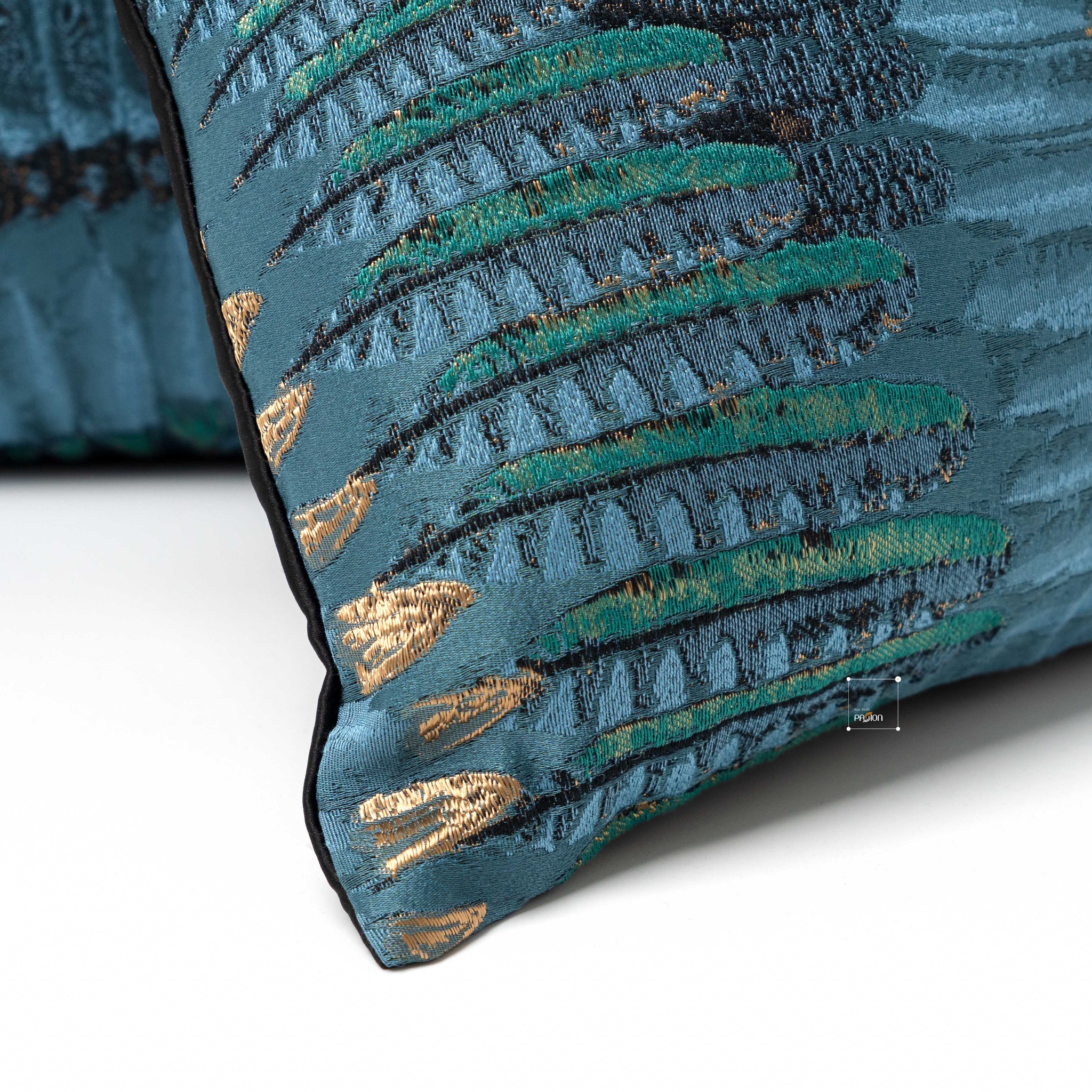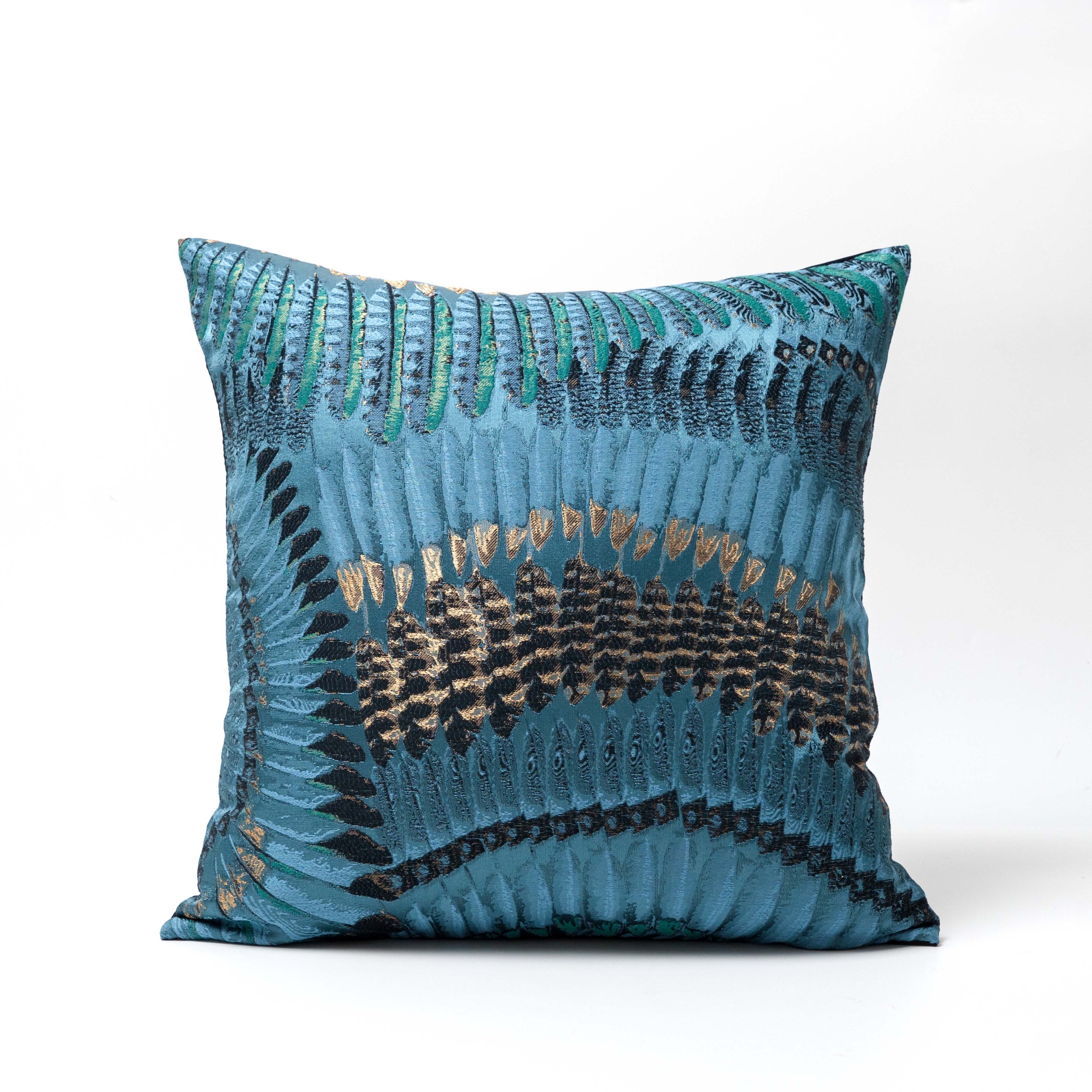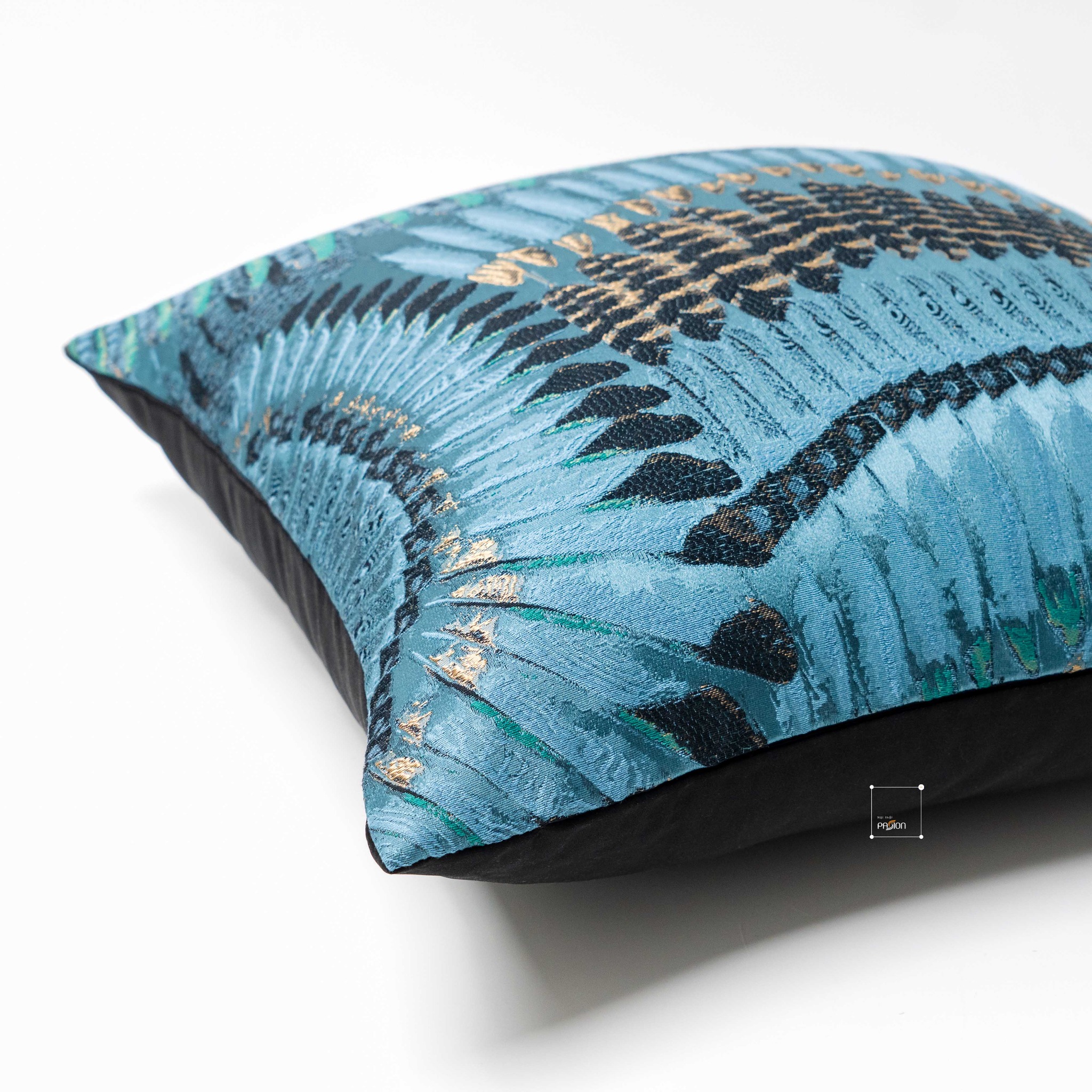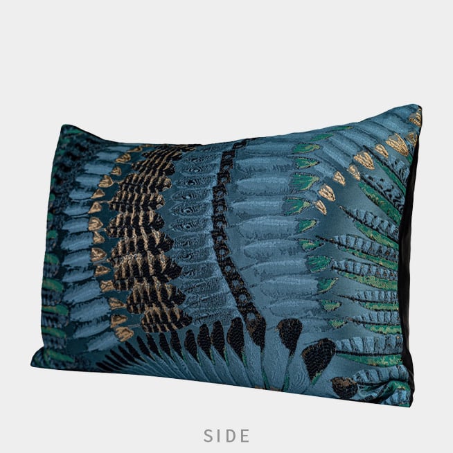 Gối tựa lưng họa tiết phượng hoàng xanh phù hợp với nhiều phong cách nội thất, từ cổ điển, hiện đại đến tối giản.
