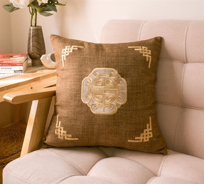 Vỏ Gối Tựa Lưng Cotton Bố Dày Thêu Hoa Văn Cổ Điển KHUYẾN MÃI - ƯU ĐÃI