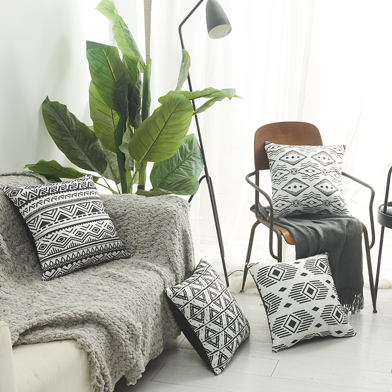 Vỏ Gối Tựa Lưng Giả Lụa Dệt Sọc Phong Cách Bohemian Trắng Đen KHUYẾN MÃI - ƯU ĐÃI