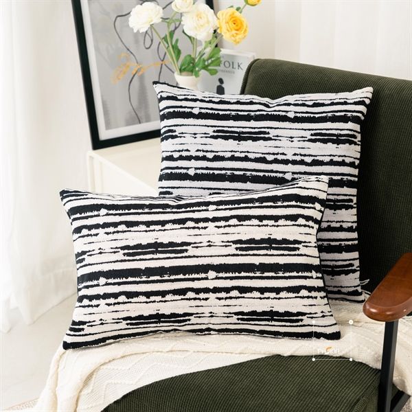 Vỏ Gối Tựa Lưng Jacquard Nhuộm Sợi Theo Phong Cách Ý Vệt Đen Trắng