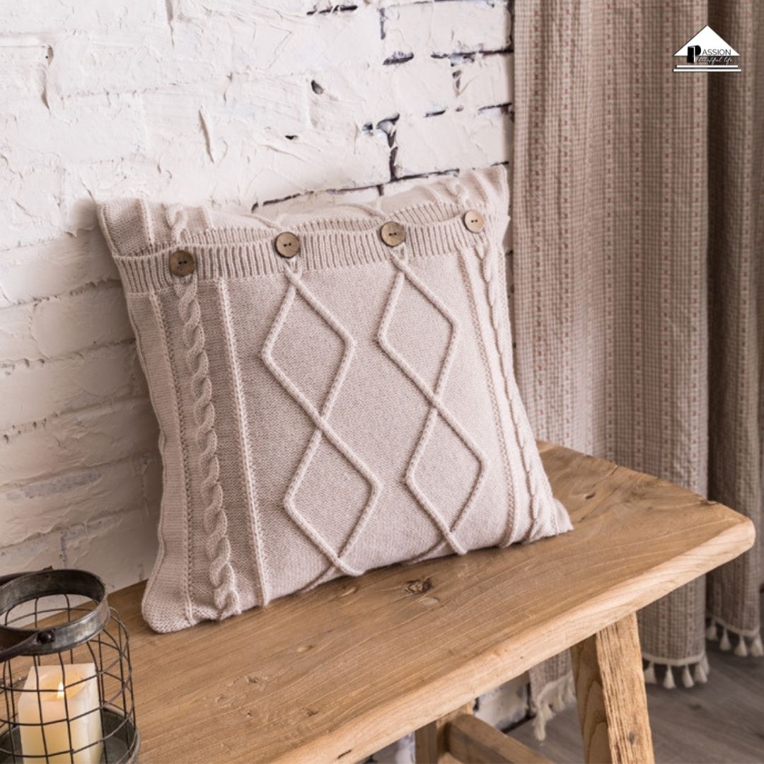 Vỏ Gối tựa lưng len đan dệt kim phối nút PA9309 phù hợp với mọi không gian như: