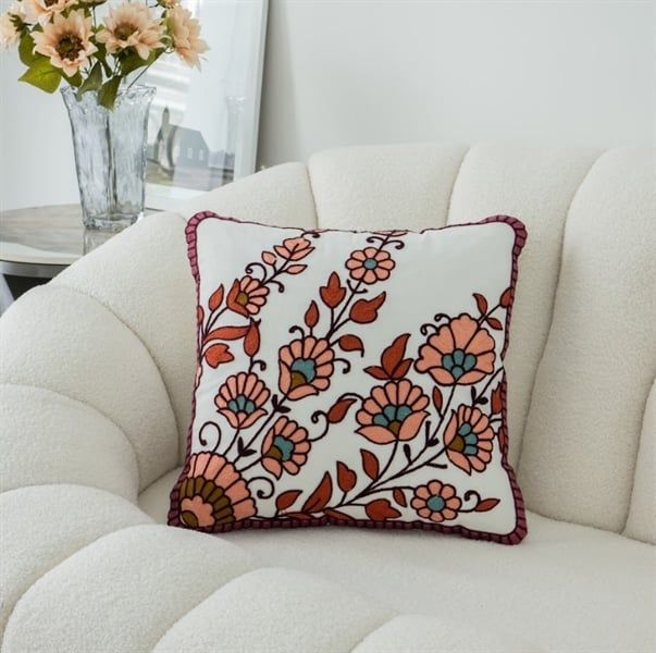 Vỏ Gối Tựa Lưng Linen Cao Cấp Thêu Hoa Văn Dệt Nổi Tây Âu