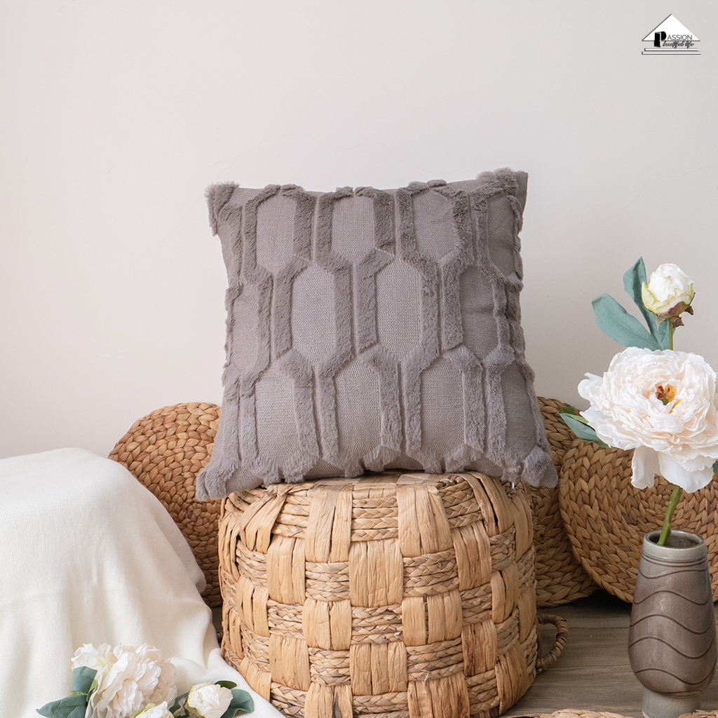Vỏ Gối Tựa Lưng Lông Dệt Nổi Họa Tiết Hình Học Thoi Vuông 3 Chiều Sang Trọng KHUYẾN MÃI - ƯU ĐÃI