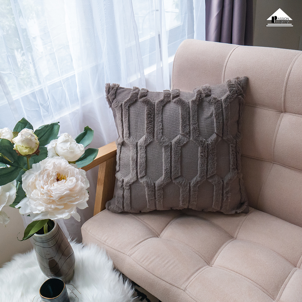Vỏ Gối Tựa Lưng Lông Dệt Nổi Họa Tiết Hình Học Thoi Vuông 3 Chiều Sang Trọng