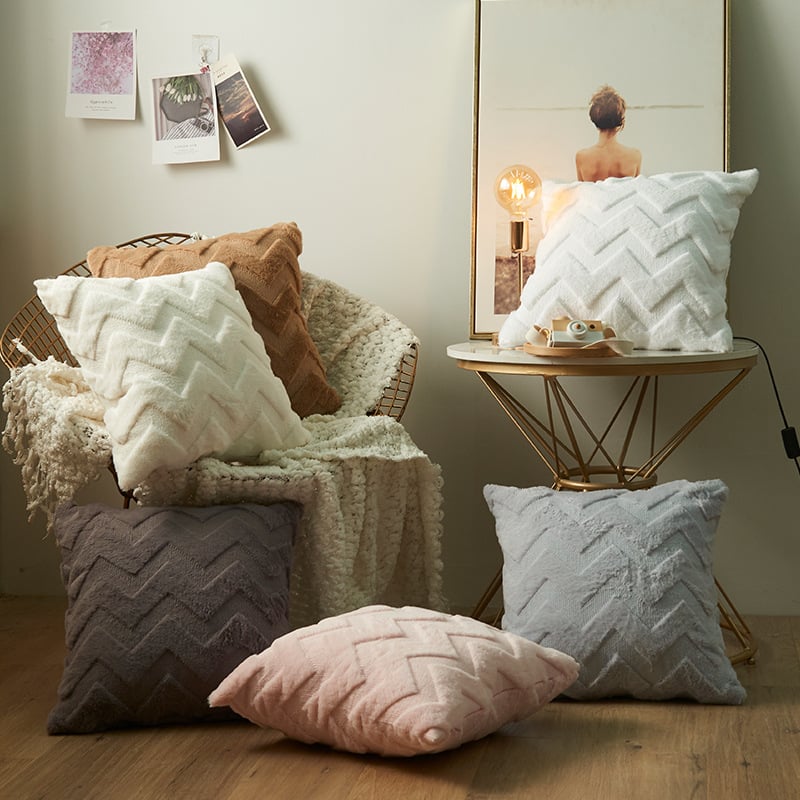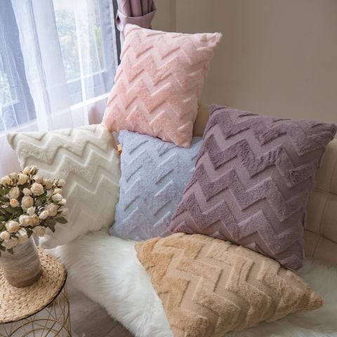 Vỏ Gối Tựa Lưng Lông Nhung Ngắn Dập Sợi ZicZac Bắc Âu KHUYẾN MÃI - ƯU ĐÃI