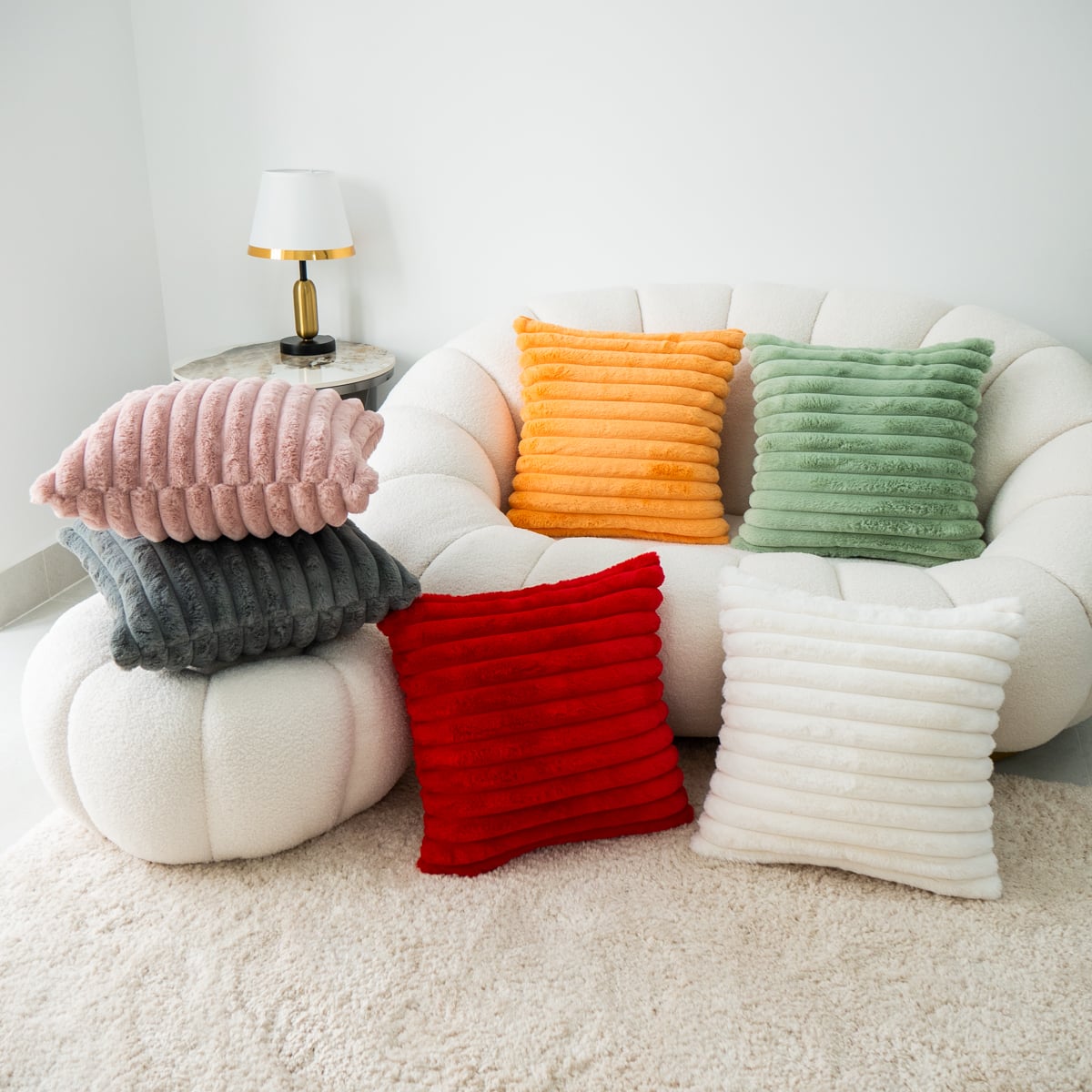Dòng Gối Tựa Lưng Lông Thỏ Sọc Lớn Sang Trọng với nhiều tông màu sắc bắt mắt, dễ dàng lựa chọn và làm nổi bật căn phòng nhà bạn. Thiết kế với sọc lớn tạo điểm nhấn, đem đến vẻ khác lạ.